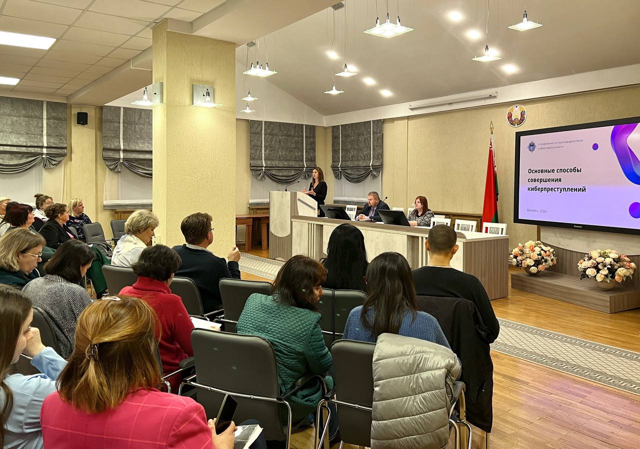 On October 2-3, 2024, a methodological association of curators of study groups was held at VSMU. The event was attended by the Vice-Rector for Ideological and Educational Work Dmitry Kuzhel, the Head of the Methodological Association of Curators Olga Fedchuk, the Head of the SPPS Victoria Mikhlyuk, the Methodologist of the Department for Ideological and Educational Work Inna Matsuk, the Detective Officer of the Department for Combating Cybercrimes of the Oktyabrsky District Department of Internal Affairs of Vitebsk Ksenia Berezovskaya.