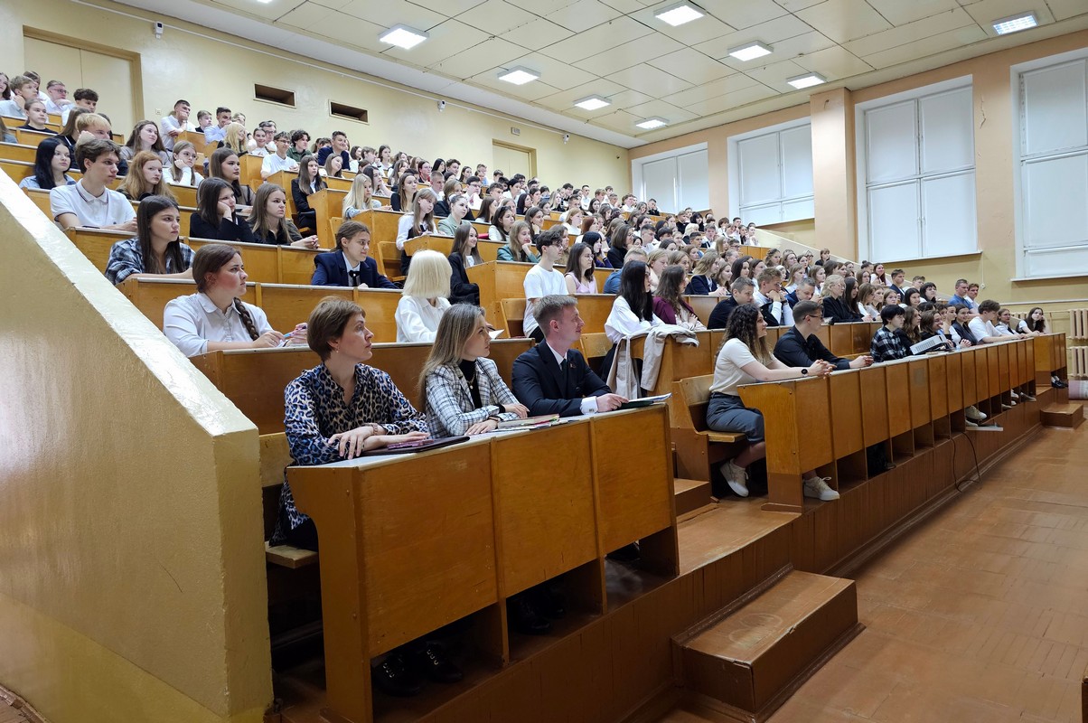 On the first day of the new academic year, course meetings were held for first-year students at the Faculty of Medicine, Pediatrics, Pharmacy, and Dentistry of VSMU. During these sessions, newly enrolled students were introduced to the history of Vitebsk State Medical University and their chosen faculty. Deans and deputy deans presented, and all organizational issues related to starting studies at the university were explained.