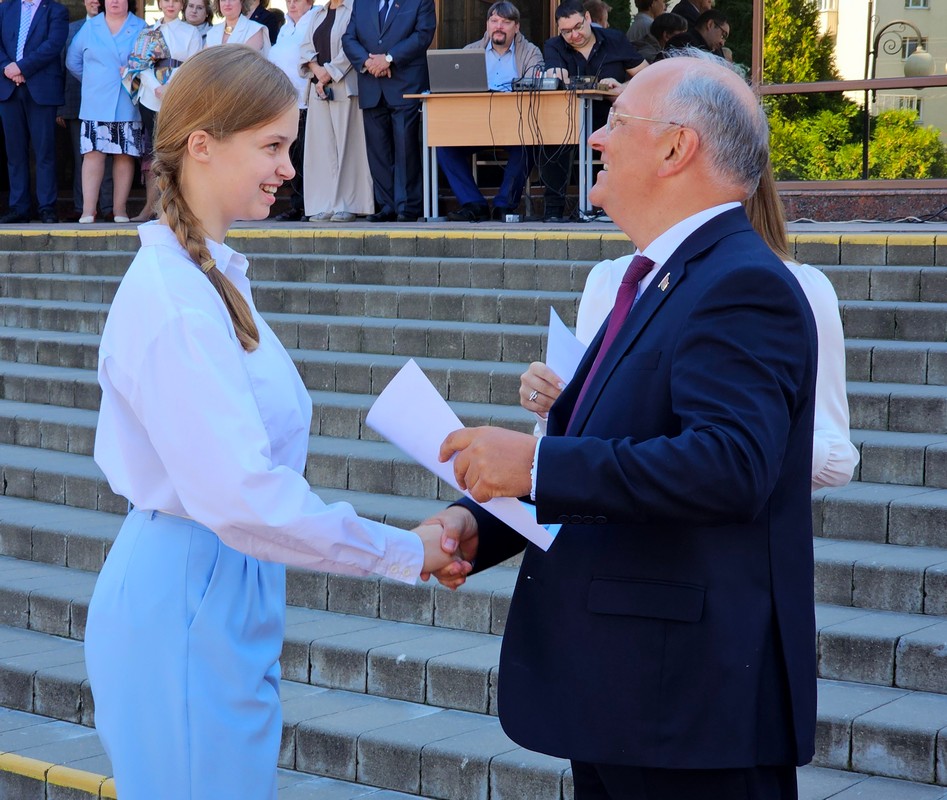 Students, staff, and the university administration gathered in the VSMU square. The honorary guest of the event was Olga Ivanova, Chairperson of the Vitebsk City Council of Deputies.