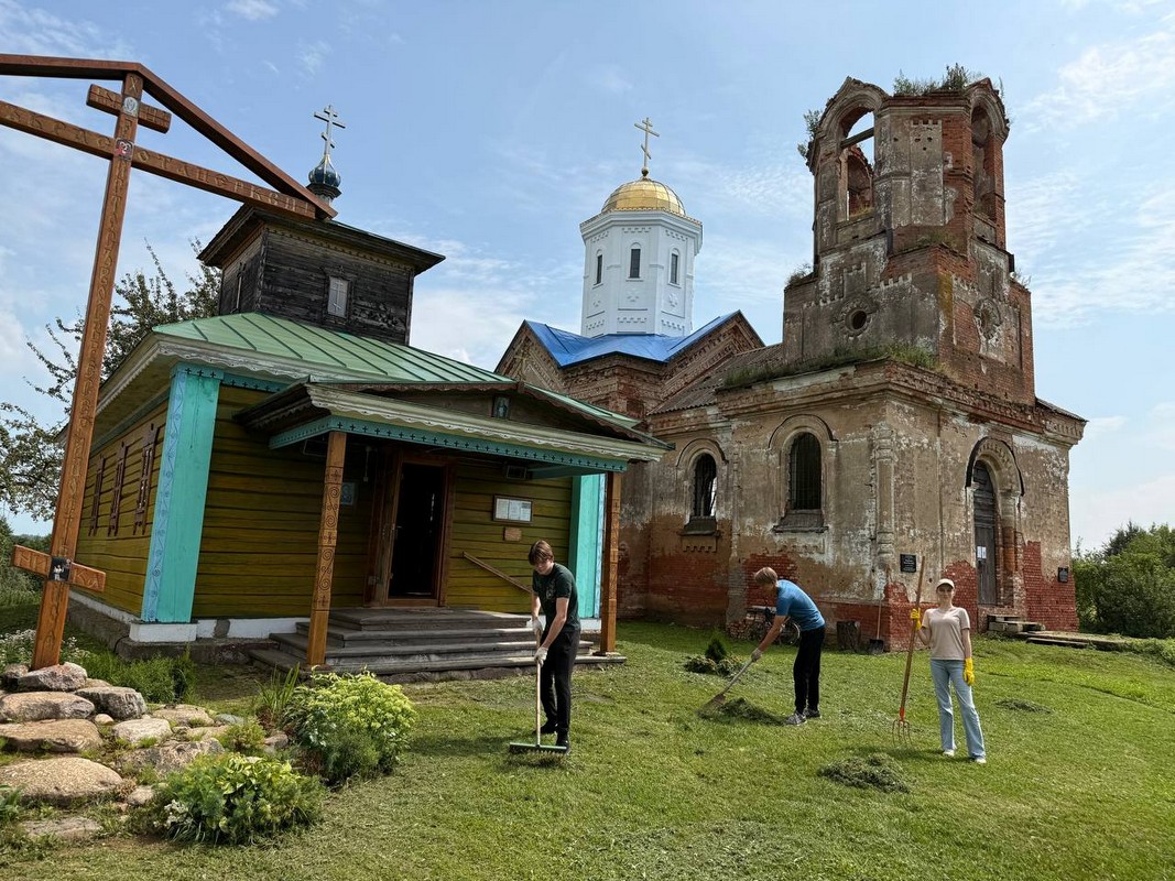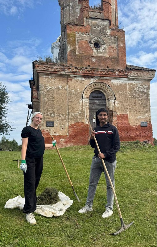 As part of the innovative project "Restoration of Churches in Vitebsk Region," students and staff of VSMU participated in a charitable event dedicated to Unity Day and the Year of Improvement. The activity involved cleaning the territory and the Church of the Nativity of the Blessed Virgin Mary, located in the village of Svecha, Beshankovichi District, Vitebsk Region.