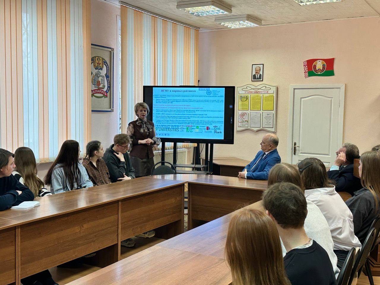 The VSMU delegation, led by Rector Alexey Chukanov, held a career guidance meeting with students from Mogilev.