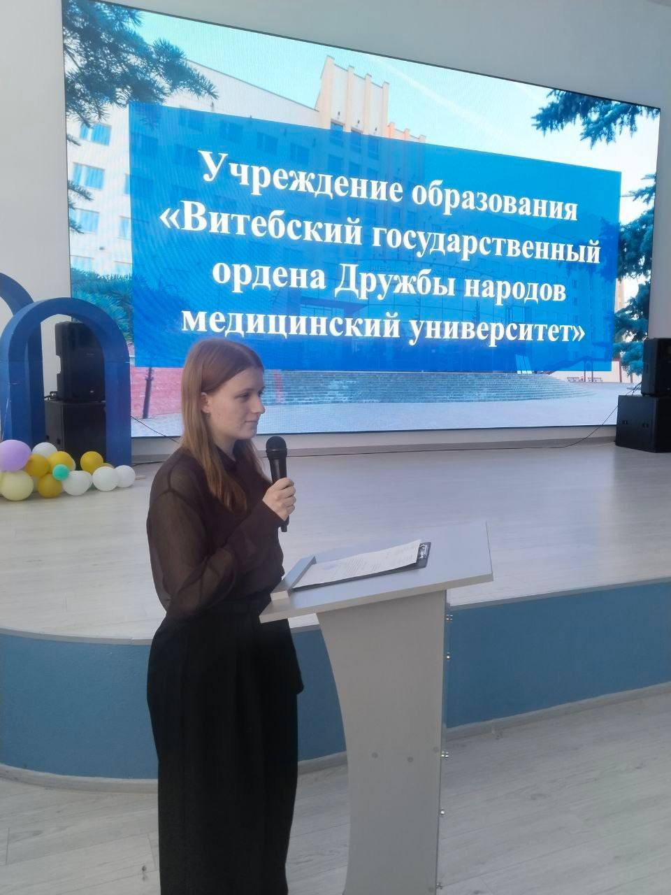 On April 3, 2026, the Faculty of Preparatory Training Course at VSMU organized a career guidance event for students of the State Educational Establishment "Zaslavskaya Secondary School No. 2 named after M.K. Puteyko." The event was held in the "Equal teaches equal" format: Polina Kocherzhenko, a first-year student of the Pharmaceutical Faculty of VSMU, spoke to the students.