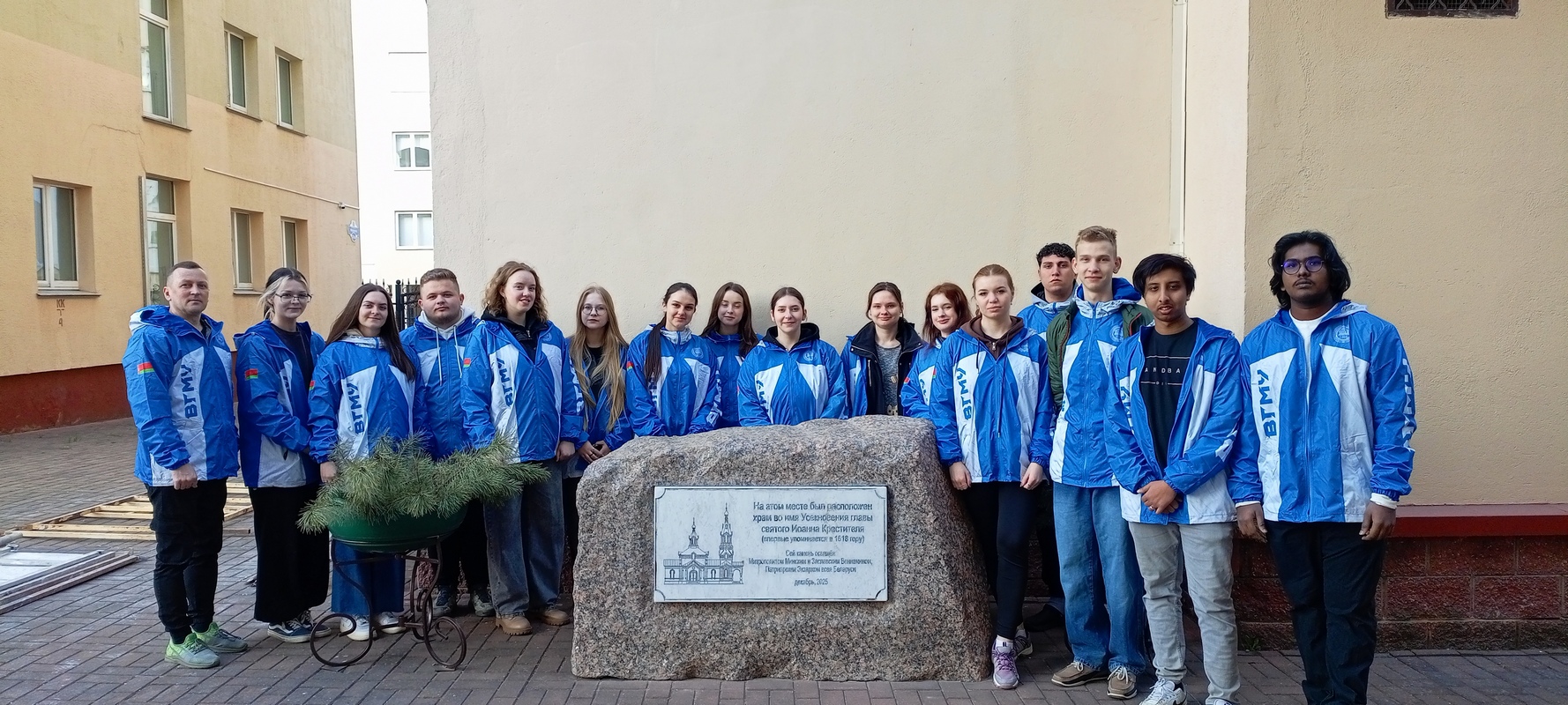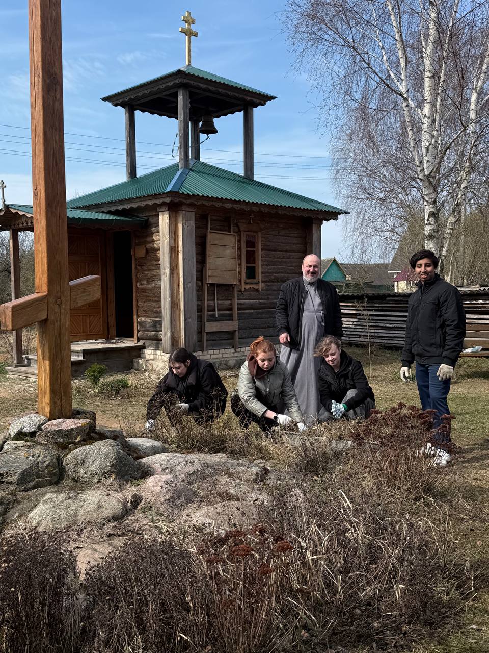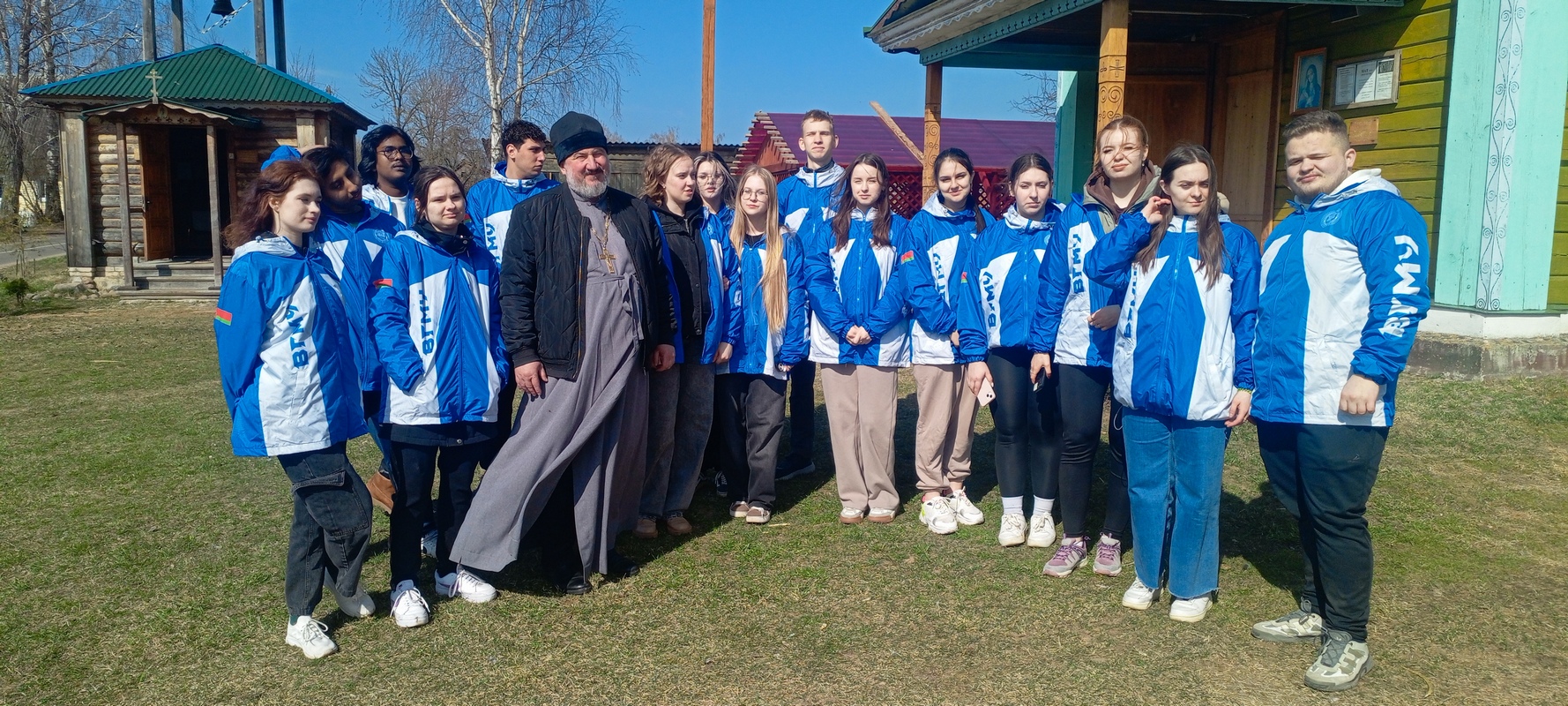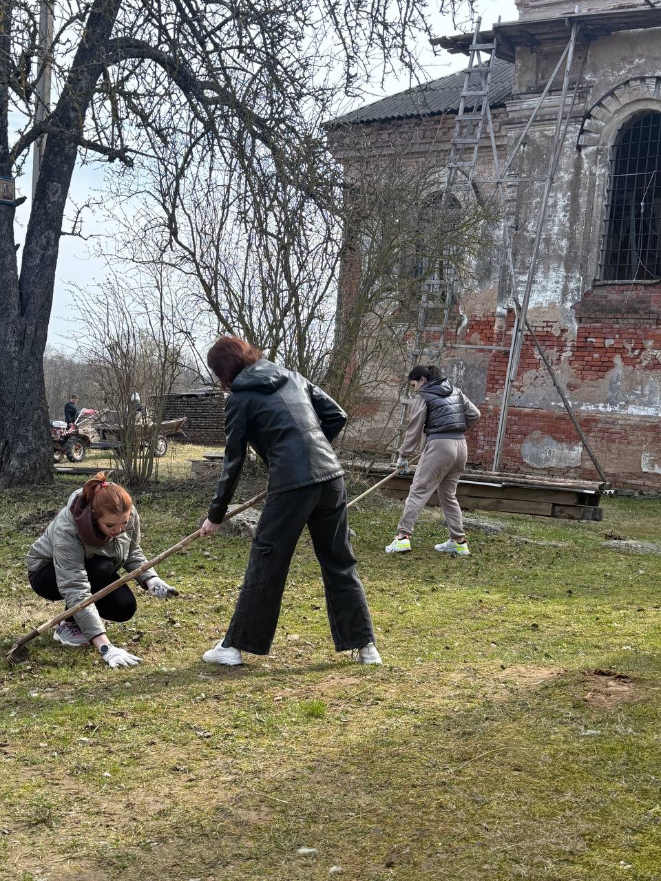 On April 1, 2026, VSMU students participated in a charity event to clean the territory of the Church of the Nativity of the Virgin Mary in the rural settlement of Candle, located in the Beshenkovichi district of the Vitebsk region. Participants included members of the student project "Family and Spiritual and Moral Traditions of Belarus," as well as representatives of the student and staff trade union committees and university volunteers. They assisted in clearing foliage and construction debris from the church grounds.