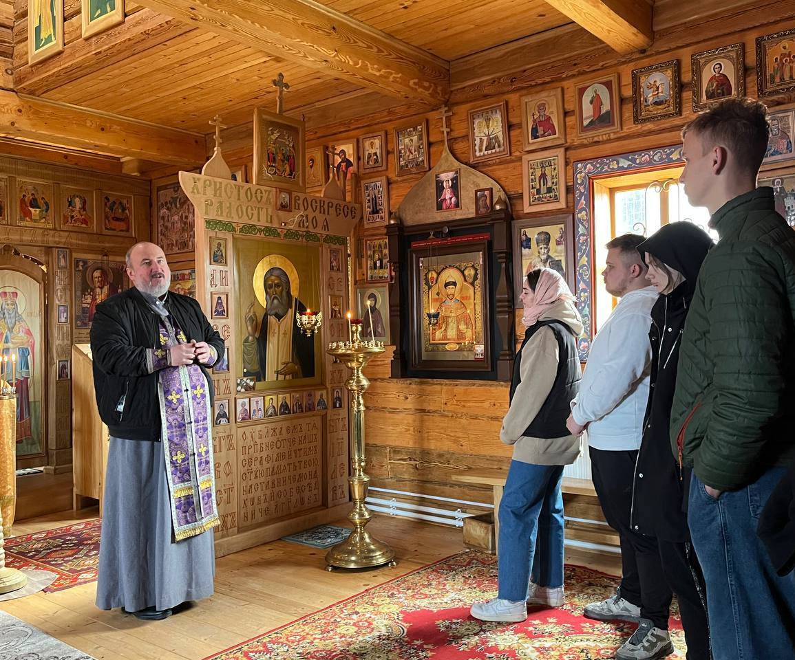 The rector of the church, Priest Alexander Markevich, spoke about the ongoing restoration work. He also held a conversation with students on caring for the outside world and loved ones, respecting parents, and maintaining a responsible attitude to life. At the end of the event, the rector expressed gratitude to the university youth for their help in preparing the village church for Easter and emphasized the importance of preserving Orthodox spiritual traditions.
