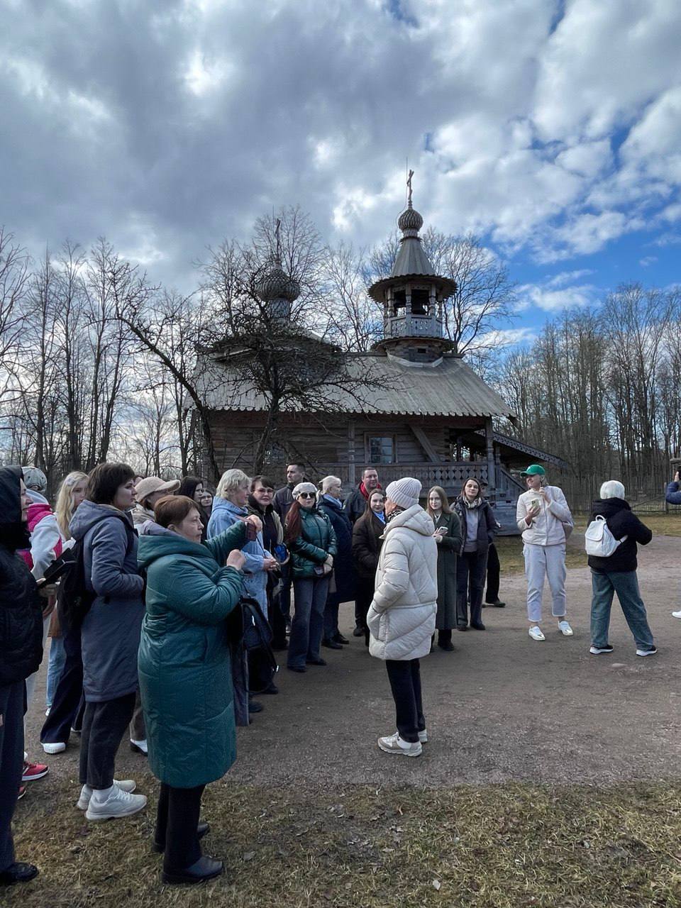 The excursion began with a car tour of the Novgorod region. The first stop was the Yuriev Monastery, followed by a visit to the open-air museum of wooden architecture, "Vitoslavlitsy," where visitors saw ancient huts filled with authentic peasant household items. Next, participants enjoyed a walking tour of the Novgorod Kremlin.