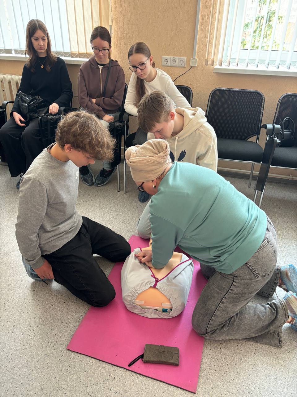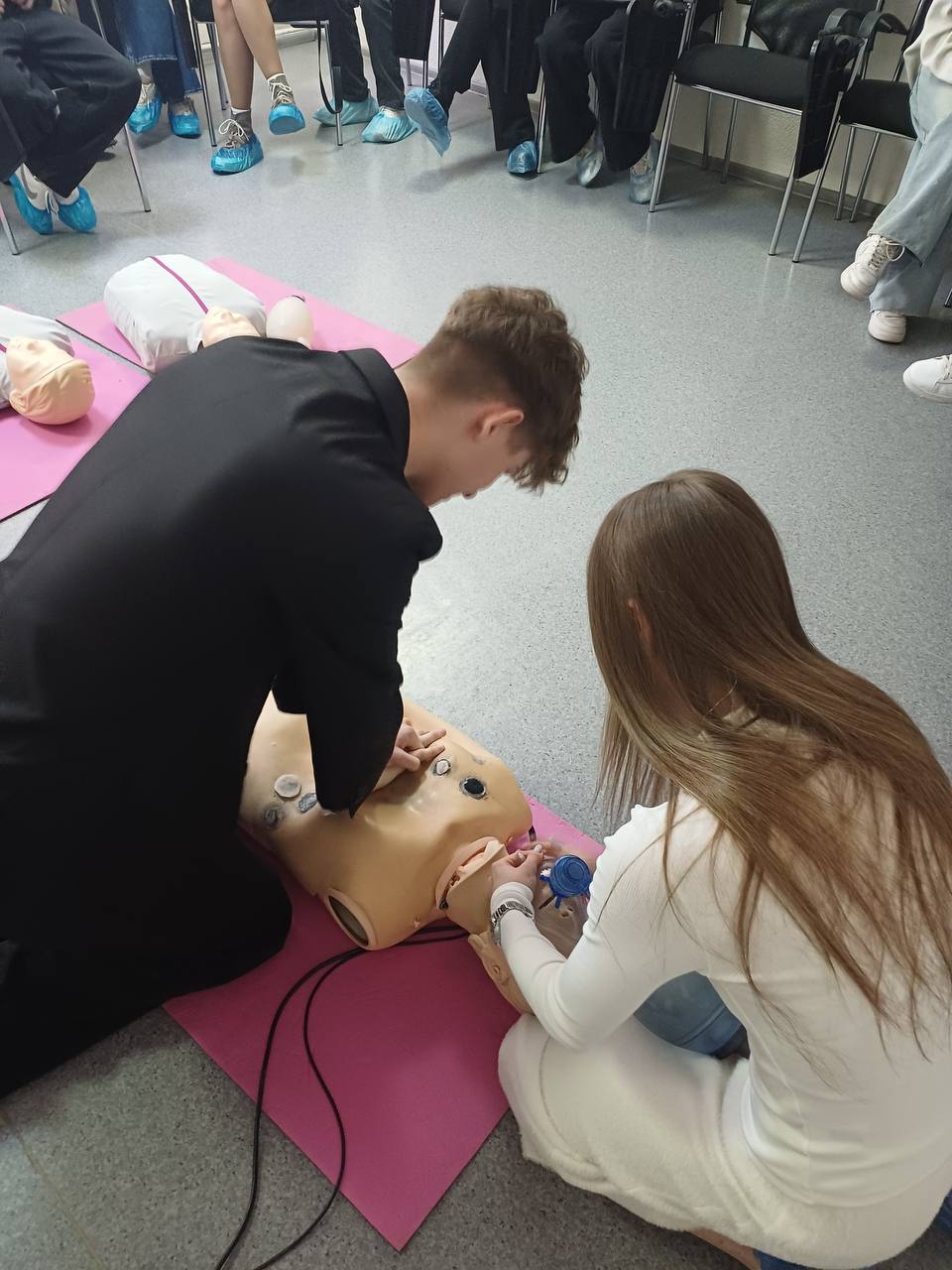 Under the guidance of the center's specialists, high school students learned algorithms for recognizing signs of sudden cardiac arrest, practiced calling emergency services, and mastered techniques such as indirect heart massage and artificial ventilation. The theoretical knowledge gained was reinforced through practical training using specialized mannequins.