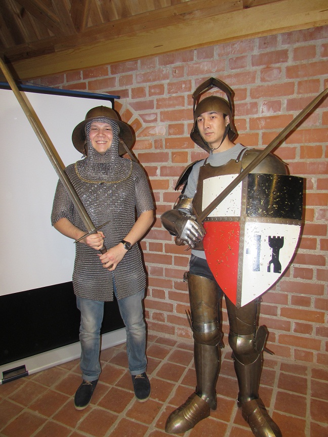 Следующий день мы провели в Тракае. Это небольшой древний городок с уникальным ландшафтом, сочетающим в себе бездонные озёра и зелёные холмы. Он славится своей неповторимой достопримечательностью – старинным замком. Тракайский замок расположен на острове, в живописном уголке природы. Замок строился как оборонительная цитадель, использовался как тюрьма, а сейчас – это исторический музей, экспозиции которого рассказывают об истории города Тракай и Тракайского замка. В залах замка мы с интересом рассматривали коллекции экспонатов прикладного искусства, мебели, фарфора и керамики, литературы, картографии, монет, охотничьих трофеев, а также богатую археологическую коллекцию. Тракай также славится тем, что здесь с конца XIV века проживают караимы (тюркский народ), которые до наших дней сберегли свои древние традиции. С каким увлечением студенты, надев фартуки и шапочки, пекли национальные караимские пирожки-кибинаи! Съев собственные «кулинарные шедевры», мы снова отправились в замок, где каждый смог поупражняться в искусстве стрельбы из лука и арбалета. А примерив тяжелые доспехи рыцарей и средневековых воинов, студенты на мгновение почувствовали себя «рыцарями печального образа».