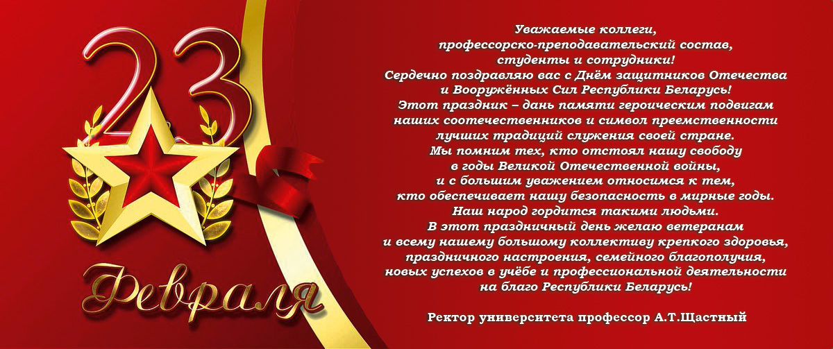 Уважаемый профессорско-преподавательский состав, работники университета и студенты! Поздравляем Вас с Днём защитника Отечества!