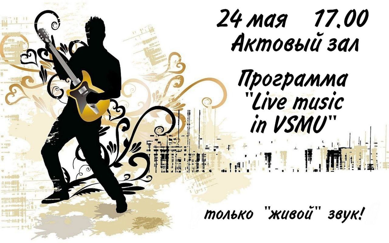 24 мая 2022 года в 17:00 в актовом зале главного учебного корпуса ВГМУ состоится концертная программа "Live music in VSMU", подготовленная студентами нашего университета. Приходите насладиться "живой" музыкой и поддержать талантливых студентов!