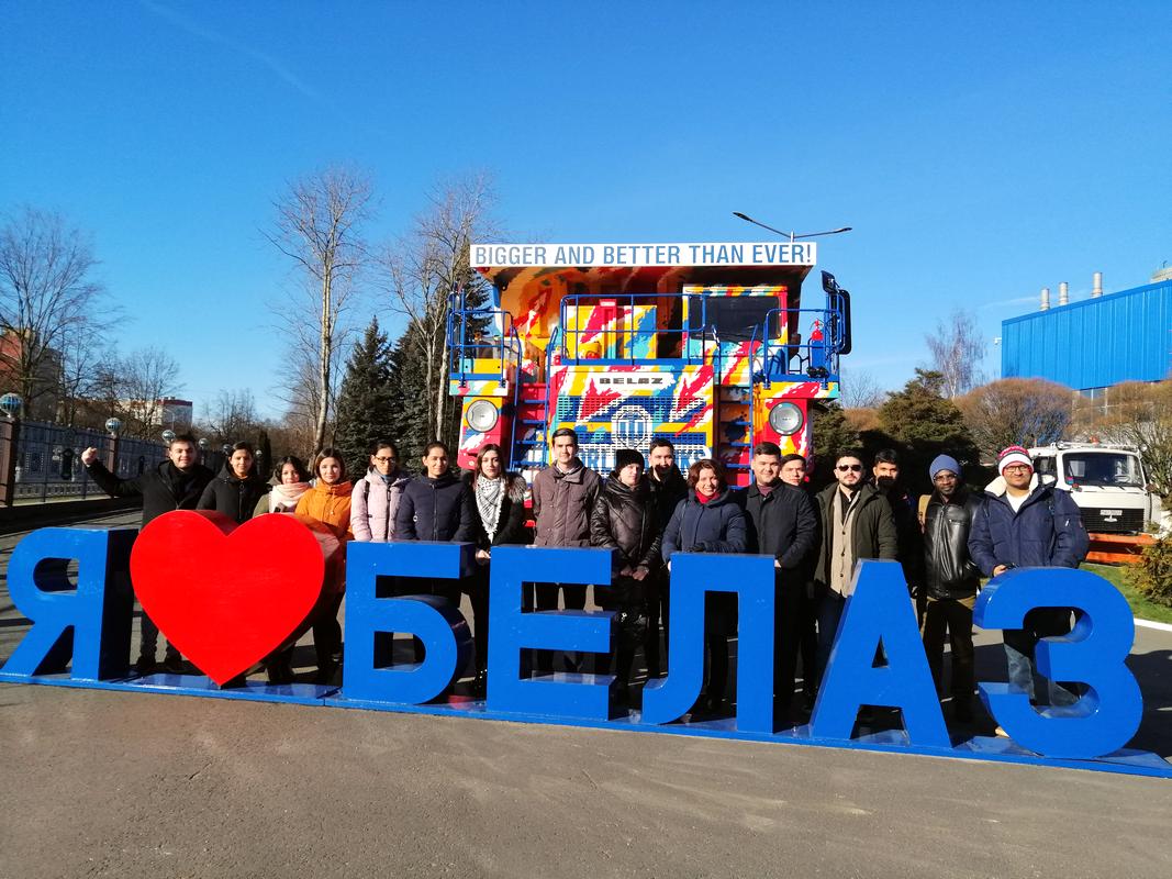 5 февраля во время зимних каникул состоялась увлекательно-познавательная экскурсионная поездка со студентами ФПИГ в города Жодино и Минск. В данной экскурсии приняли участие студенты разных курсов из Индии, Ганы, Туркменистана, Иордании и Ливана. Организаторы и идейные вдохновители – зам. декана ФПИГ М.А. Сенькович и зав. кафедрой органической химии О.А. Ходос – решили показать иностранным студентам такие бренды Беларуси, как завод «БелАЗ» в Жодино и Национальную библиотеку Беларуси в Минске.