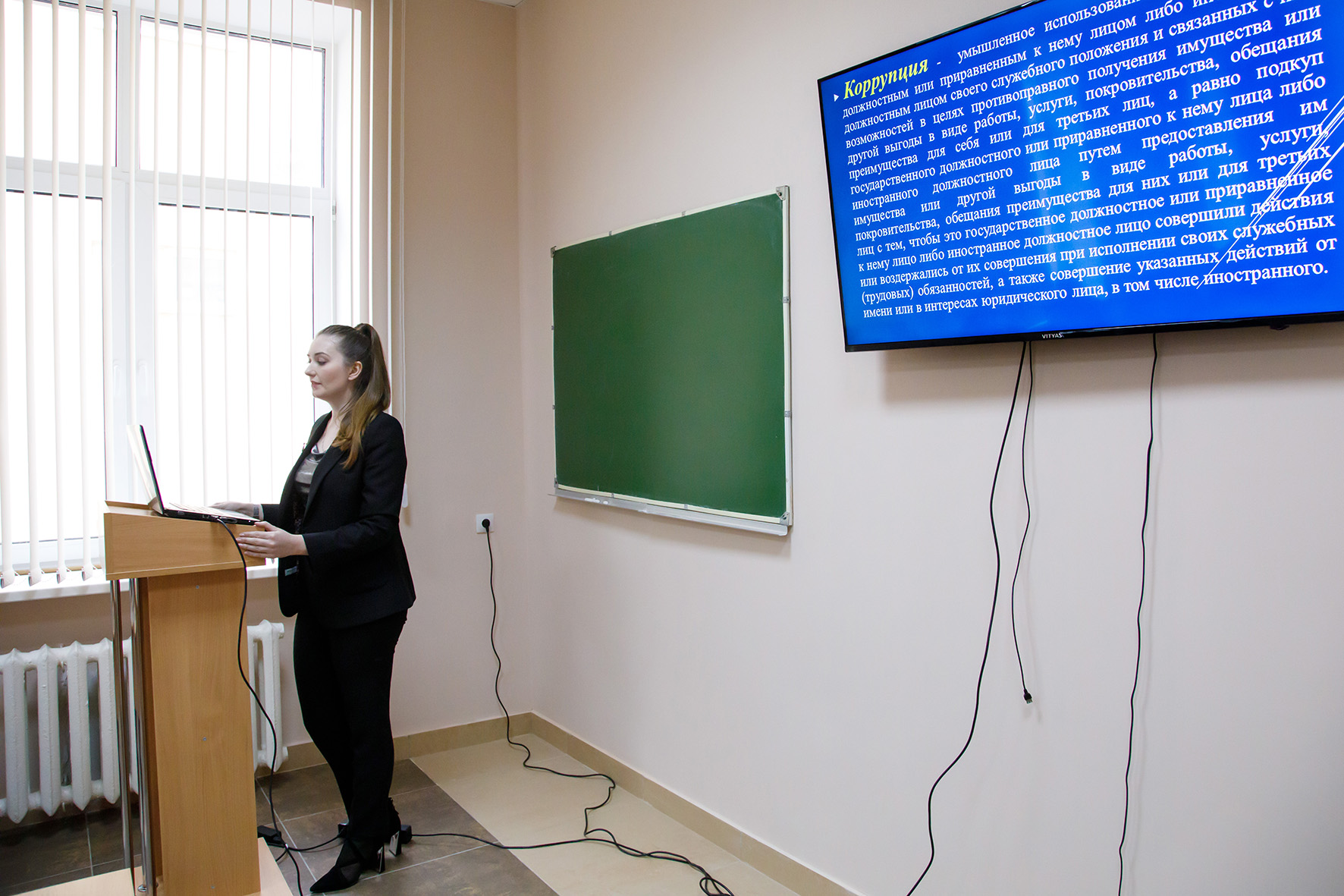 Старший преподаватель кафедры социально-гуманитарных наук Цыбульская Е.В. выступила с докладом «Предупреждение и пресечение коррупционных правонарушений: обзор законодательства Республики Беларусь по вопросам противодействия коррупции».