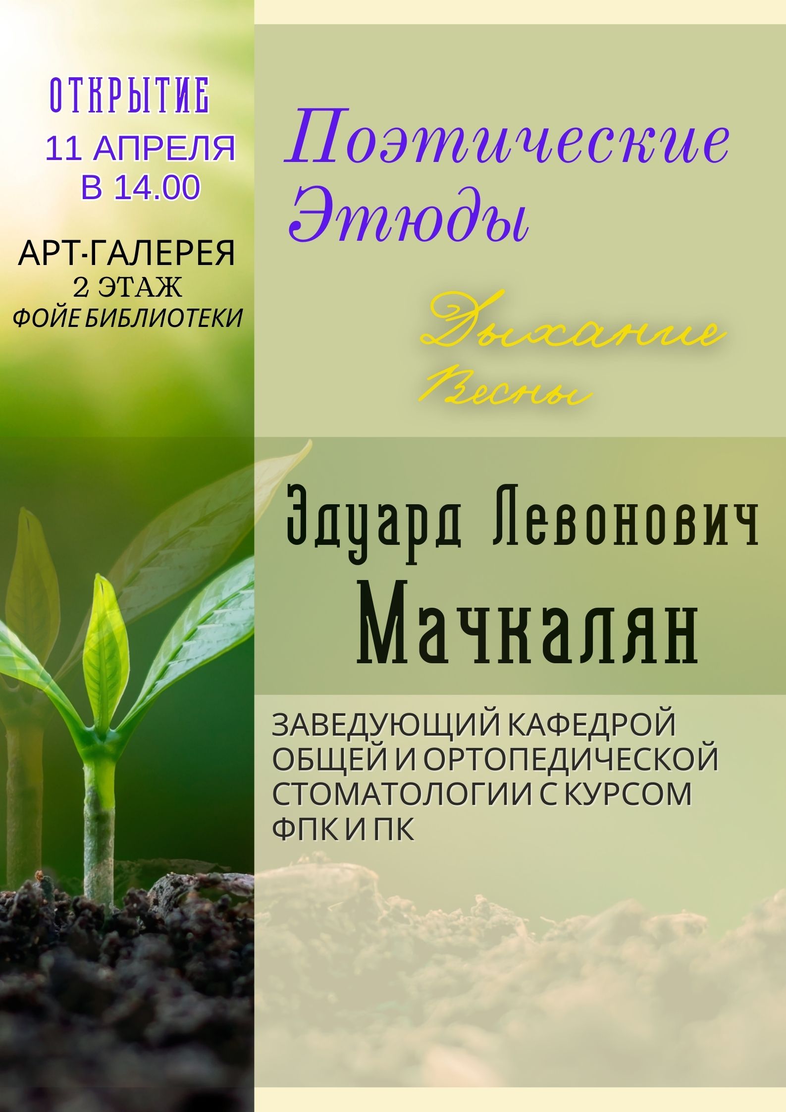 Автор выставки Эдуард Левонович Мачкалян, заведующий кафедрой общей и ортопедической стоматологии с курсом ФПК и ПК, представит своё творчество в арт-галерее библиотеки.