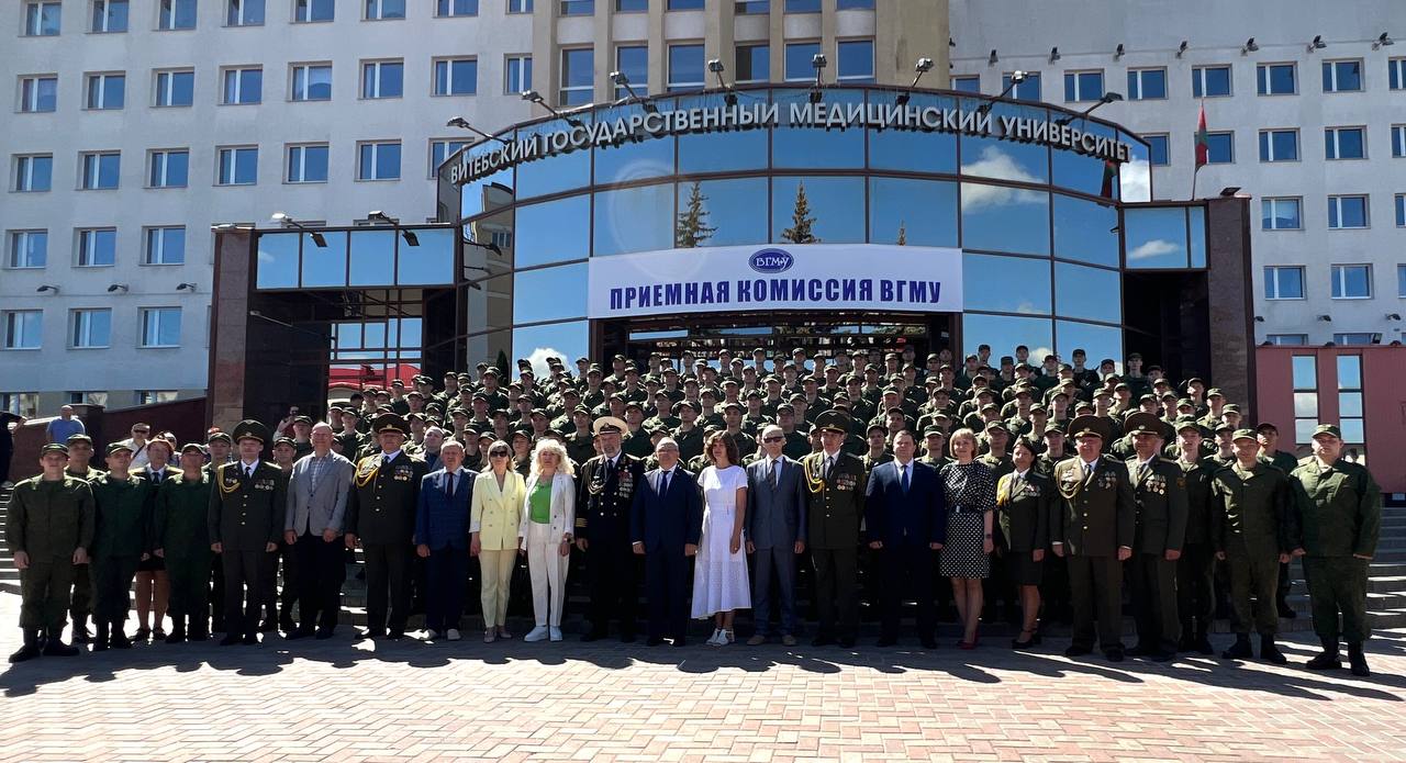 150 студентов-медиков произнесли клятву на верность народу Республики Беларусь. С напутственным словом к присутствующим обратились ректор университета Алексей Чуканов, мать студента, принявшего присягу, Лариса Васильева, председатель Витебской областной организации Белорусского союза офицеров капитан II ранга Сергей Денисов, студент, принявший Военную присягу, Кирилл Кубраков и настоятель Храма святого пророка Илии отец Александр.