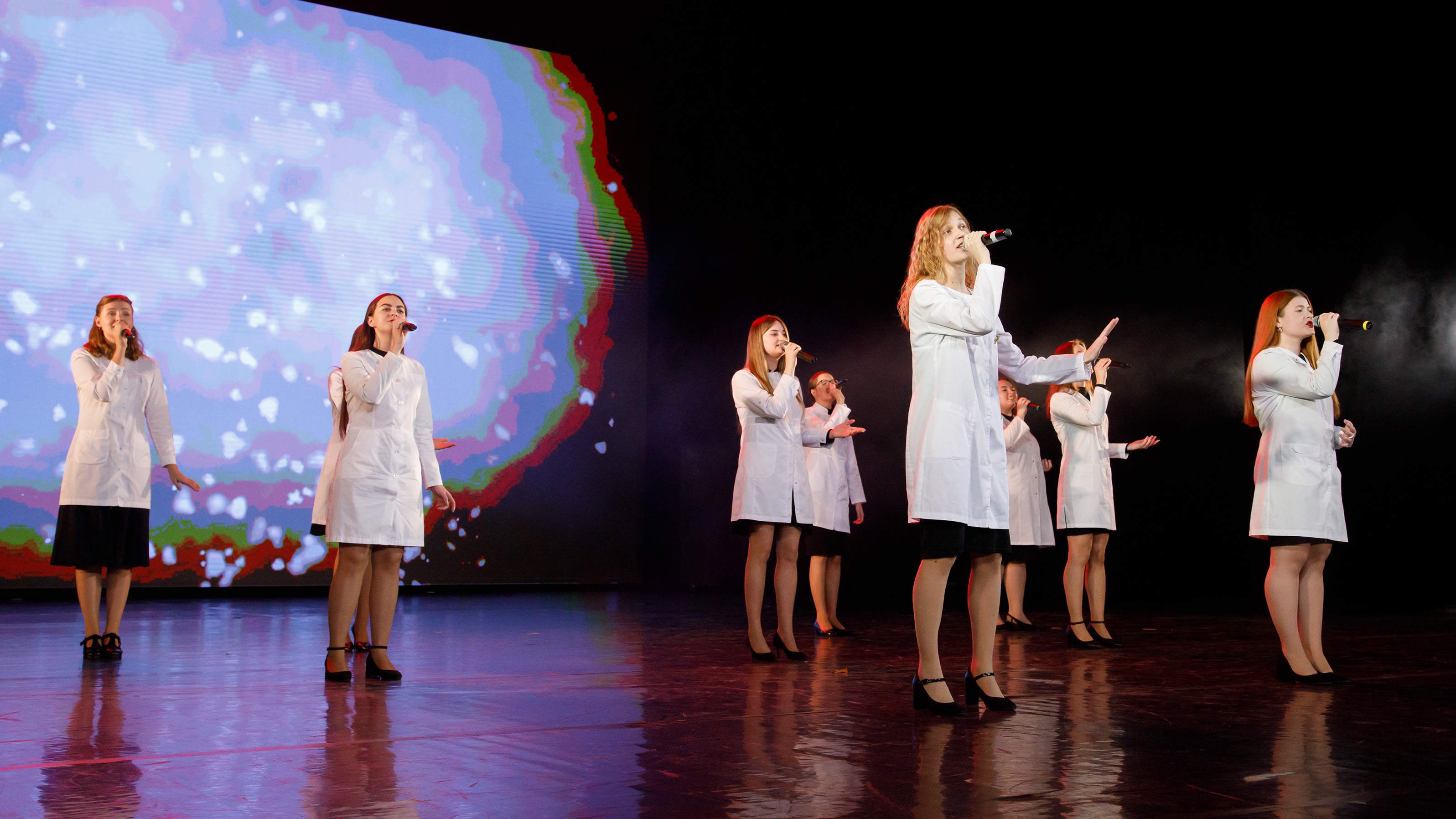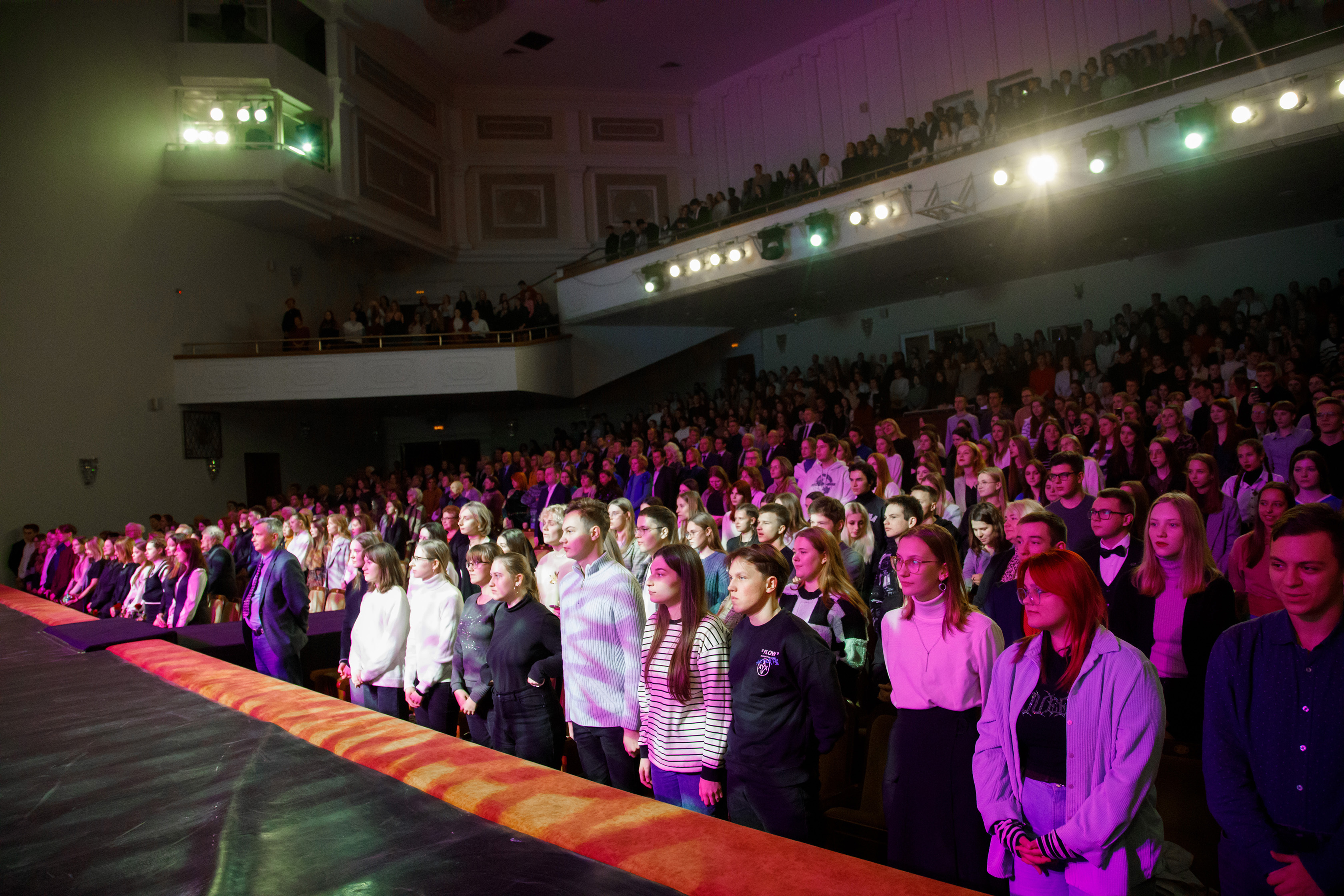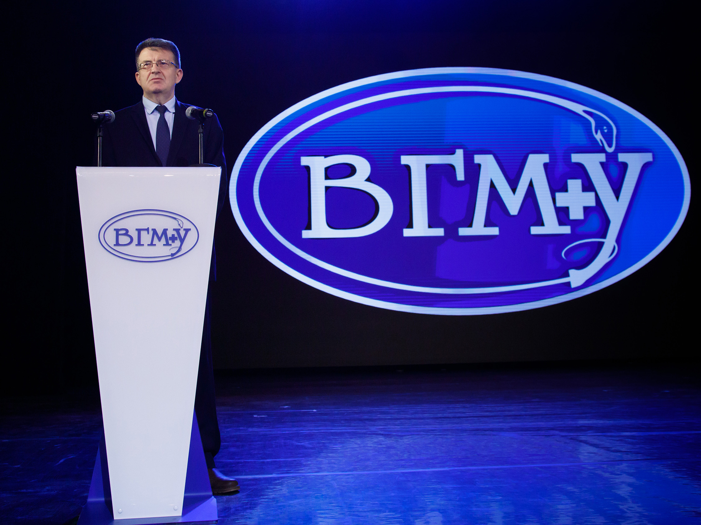 Завершилось торжество композицией «Самый лучший в мире вуз» и Гимном ВГМУ, которые, без преувеличения, пел весь зал.