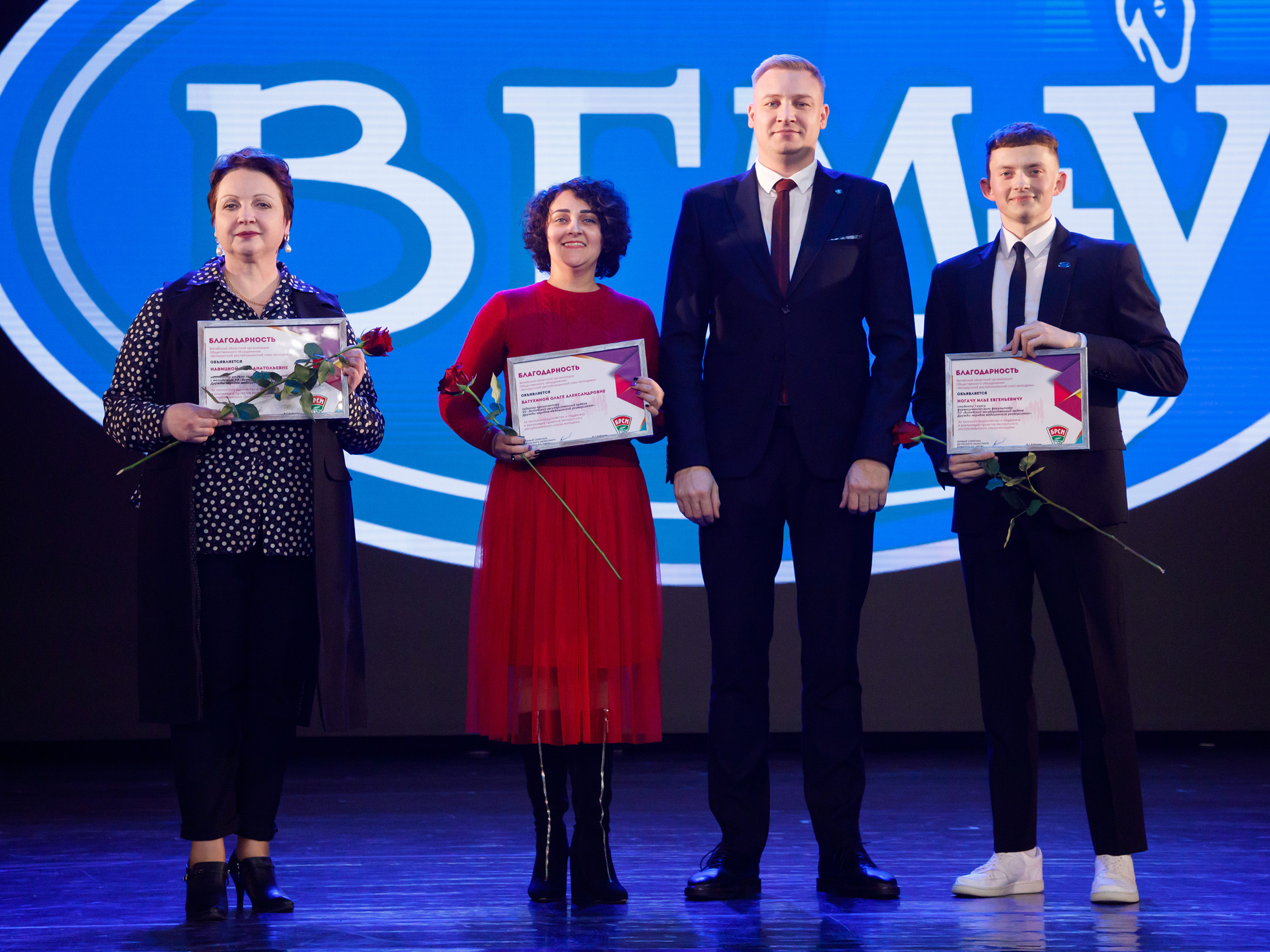 Благодарность Витебского областного комитета Общественного объединения БРСМ за тесное сотрудничество и поддержку в реализации проектов БРСМ объявлена Вере Навицкой, методисту отдела по воспитательной работе с молодёжью, Ольге Батухиной, педагогу-организатору ВГМУ, Илье Ногачу, студенту 5 курса фармацевтического факультета.