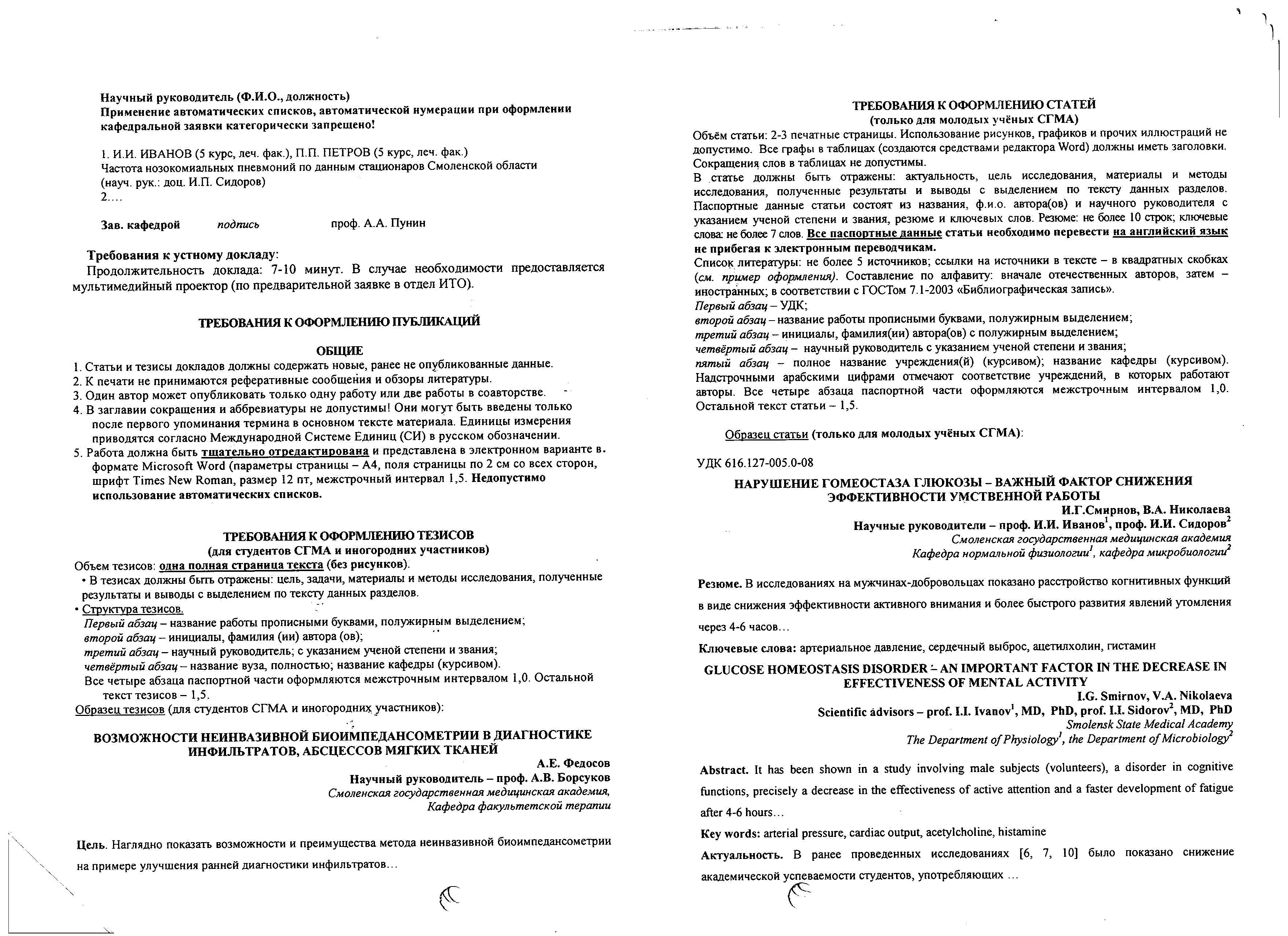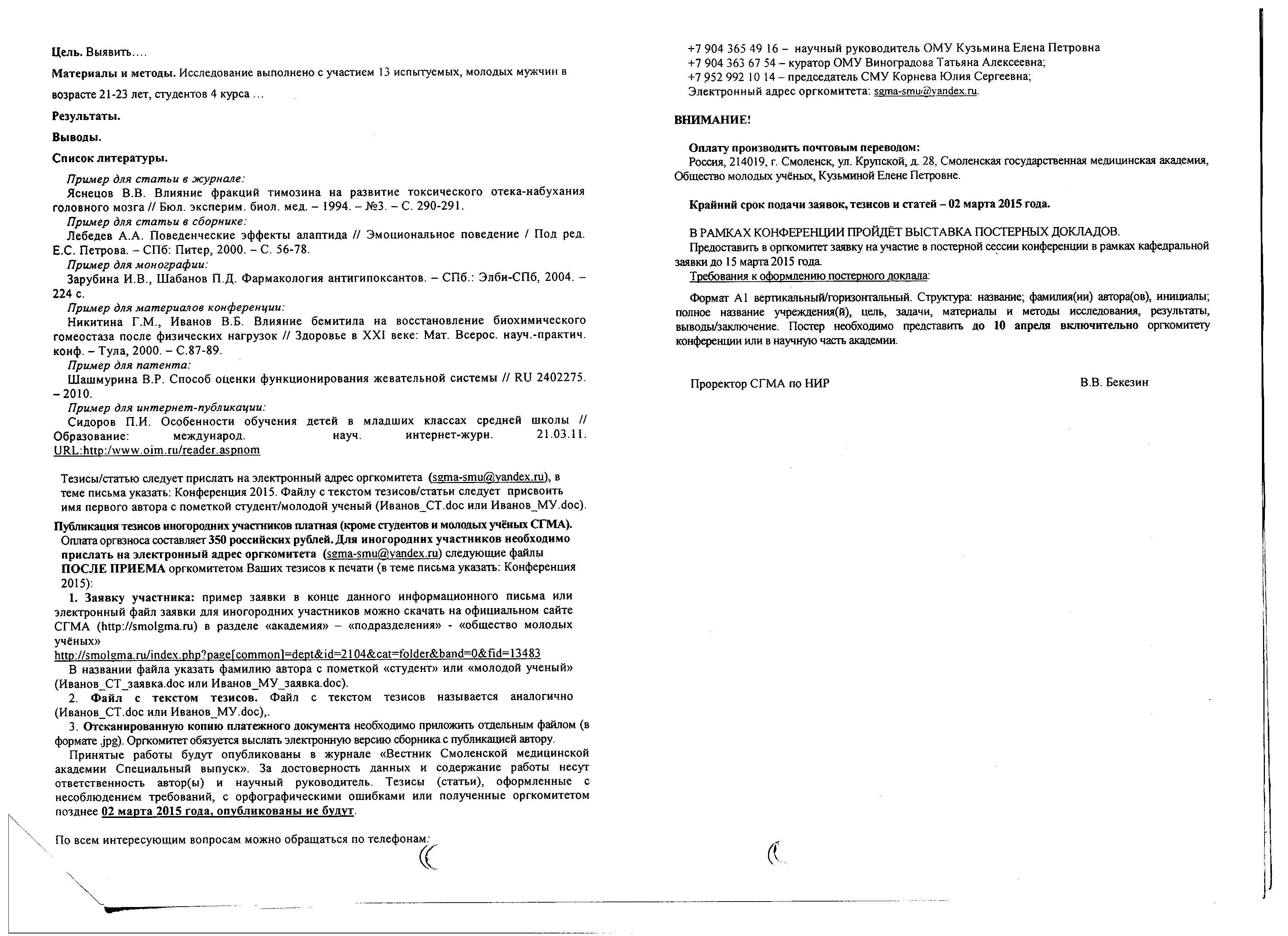 23 апреля 2015 года в Смоленской государственной медицинской академии будет проходить III Всероссийская НПК студентов и молодых ученых с международным участием «Актуальные проблемы науки XXI века» (67 научная студенческая конференция и 43 конференция молодых ученых).