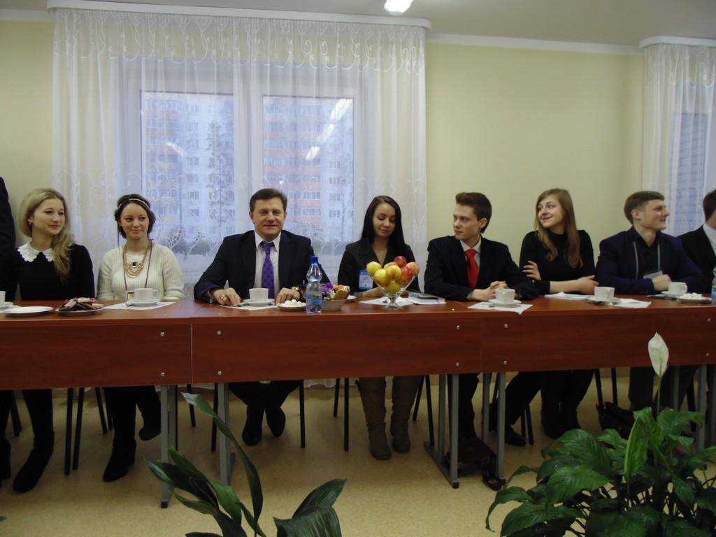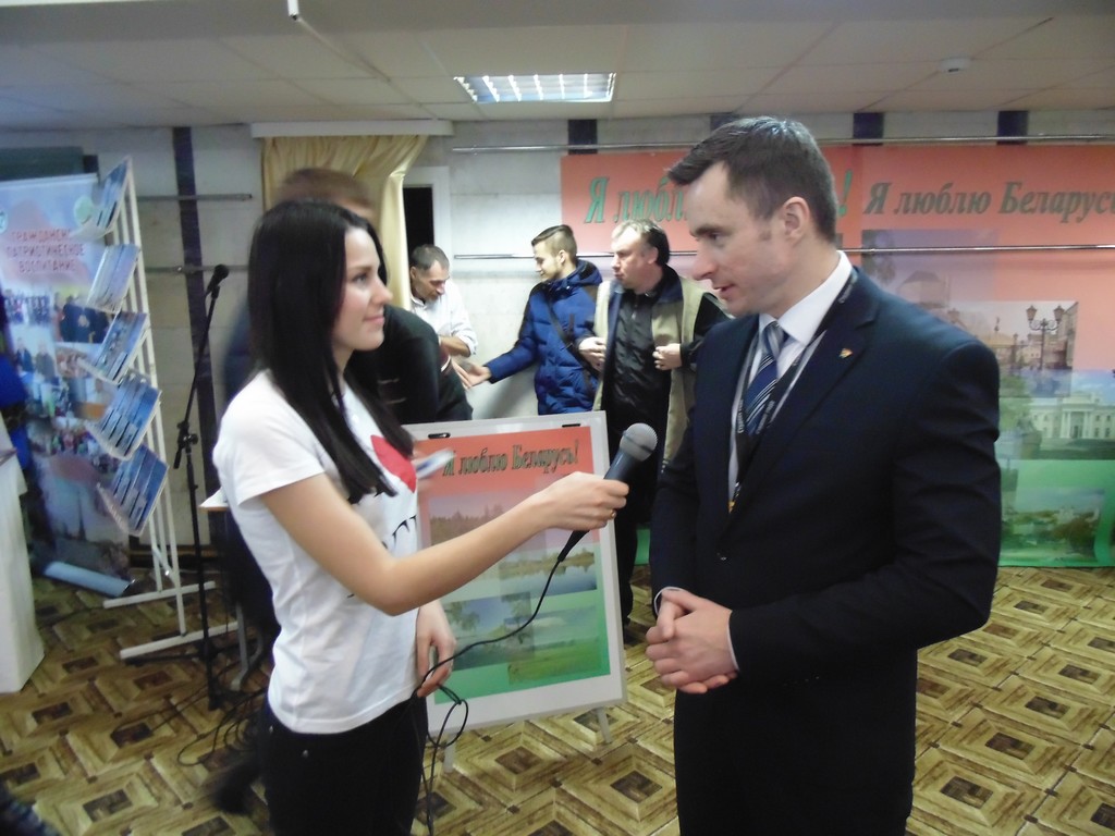 Второй день работы республиканского форума (31 января) начался с выставки проектов гражданско-патриотической, профориентационной направленности и молодежных инициатив в рамках республиканской патриотической акции «Я – грамадзянін Беларусі». Параллельно состоялась встреча лидеров студенческого актива учреждений высшего образования с министром образования Республики Беларусь. Интересным оказался формат самой встречи, на которой Михаил Анатольевич в неформальной обстановке за чашкой чая обсудил со студенческой молодежью проблемы, интересующие учащуюся молодежь, подробно рассказал о новых предстоящих проектах в сфере молодежной политики, о создании новой совещательной структуры – Общественного совета при министерстве образования (куда войдут по 1 представителю студенческой молодежи от каждого вуза с целью обсуждения проблем в сфере образования), об запуске нового интернет-проекта «Образование глазами молодежи», просил студентов быть и далее активными в жизни своего вуза и своей страны. В конце данной встречи председатель профкома студентов УО «Витебский государственный медицинский университет» А.М. Мясоедов поблагодарил Михаила Анатольевича за интересную встречу и подарил министру от имени Витебского государственного медицинского университета памятную книгу ВГМУ, изданную в связи с 80-летием университета и рекламную продукцию с логотипом ВГМУ.