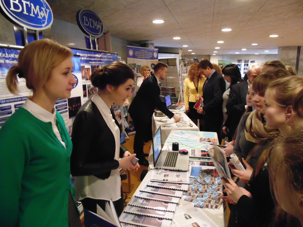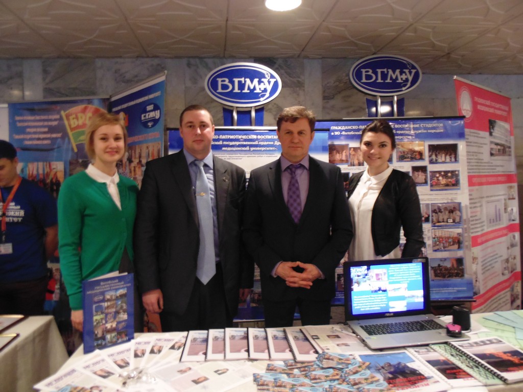 На протяжении всей работы форума делегация от ВГМУ поучаствовала во многих интереснейших мероприятиях. На протяжении двух дней мы активно участвовали с презентацией своего вуза в выставке проектов гражданско-патриотической, профориентационной направленности и молодежных инициатив в рамках республиканской патриотической акции «Я – грамадзянін Беларусі». Необходимо отметить, что данную выставку посетил министр образования М.А. Журавков, который поинтересовался и работой в сфере гражданско-патриотической, профориентационной направленности и молодежных инициатив в нашем университете. Следует отметить также и то, что во время работы нашей выставки участники и гости форума проявили большой интерес и внимание к экспозиции, материалам, мультимедийной информации, рекламной продукции нашего вуза.