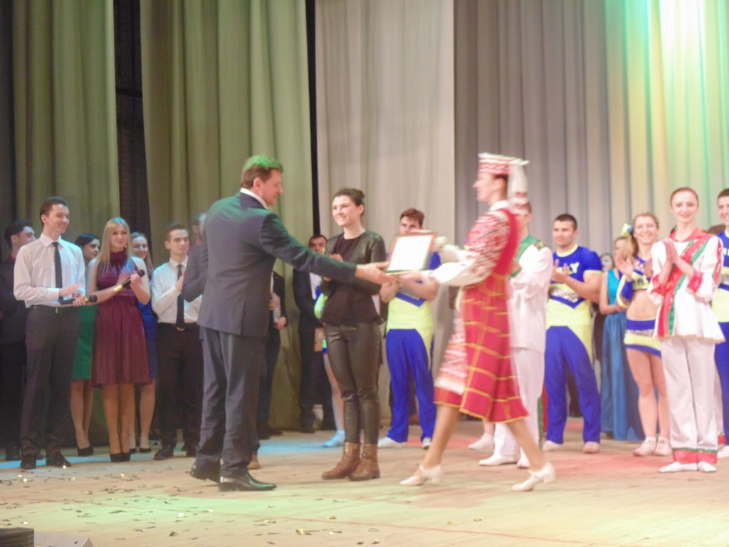 После этой встречи главной площадкой форума стал дворец культуры, где прошел финал республиканского конкурса «Студент года – 2014», что стало новшеством данного форума. Соревнования проходили среди 8 победителей областных и минского этапов конкурса. Претенденты на звание лучшего студента представили республиканскому жюри и зрителям свое портфолио, «Визитную карточку», защитили свой проект «Проект в Год молодежи», показали видеоролик «Я – студент!», участвовали в конкурсе ораторского мастерства «Моя специальность – моя гарантия будущего», патриотическом конкурсе «Мой герой Победы» и творческом конкурсе «Молодая Беларусь!». Нужно отметить, что мероприятие «Студент года – 2014» поразило нас серьезной подготовленностью конкурсантов, яркими номерами в их исполнении на тему гражданско-патриотического воспитания, активностью всего зала, мультимедийным отчетом о работе ОО «БРСМ», торжественной атмосферой всего праздника. Победительницей стала студентка из УО «Барановичский государственный университет», которую поздравил и вручил ей ценные подарки министр образования.