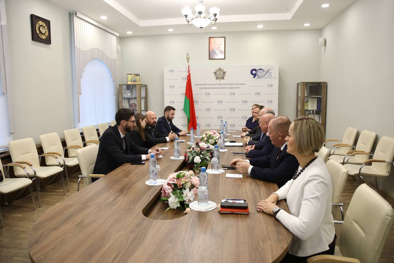 Гостя приветствовали заместитель председателя Витебского облисполкома Вячеслав Дурнов, начальник главного управления по здравоохранению Витебского облисполкома Михаил Вишневецкий, ректор ВГМУ Алексей Чуканов, проректор по международным связям и организационно-правовой работе Денис Лиц, руководители международных подразделений вуза: начальник управления международных и межрегиональных связей Елена Шарыхина и начальник отдела международных связей Анна Пчелинцева.