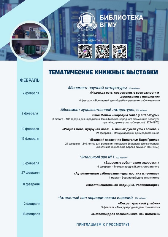 Приглашаем вас посетить цикл тематических выставок, организованных в библиотеке в феврале месяце.
