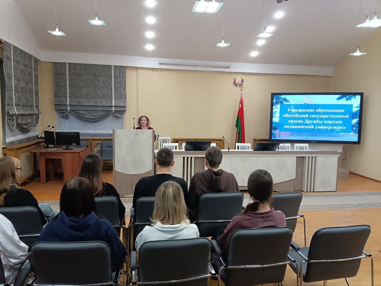 16 февраля 2026 года факультет довузовской подготовки ВГМУ провел профориентационное мероприятие для учащихся средней школы №3 г. Толочина. Заместитель декана Любовь Орехова познакомила гостей с преимуществами обучения в одном из ведущих медицинских университетов страны, продемонстрировала учащимся содержательную презентацию.
