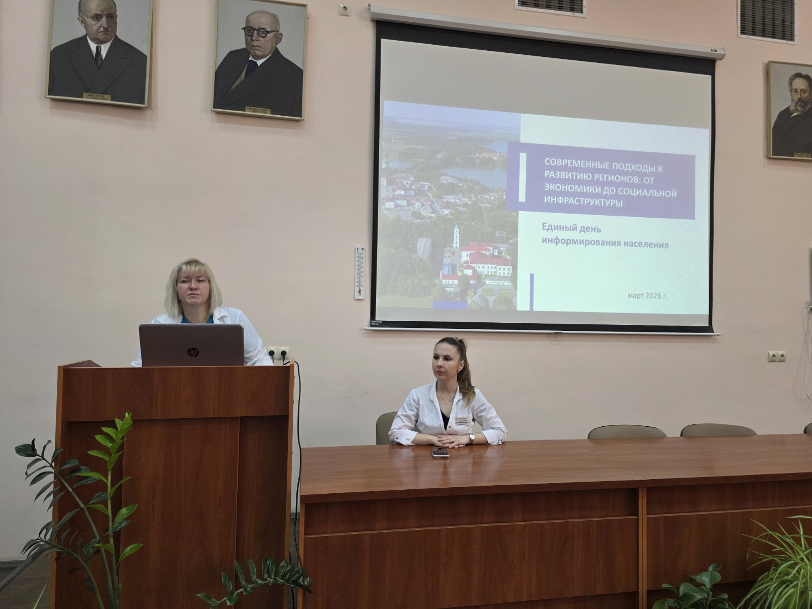 19 марта 2026 года в ВГМУ прошли информационные встречи, приуроченные к Единому дню информирования. Мероприятия охватили все факультеты вуза, структурные подразделения, Клинику ВГМУ, студенческие общежития, а также клинические кафедры.