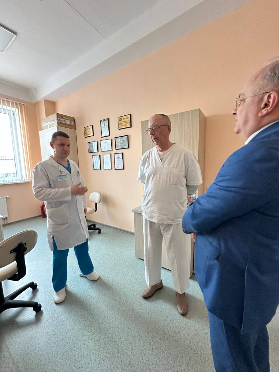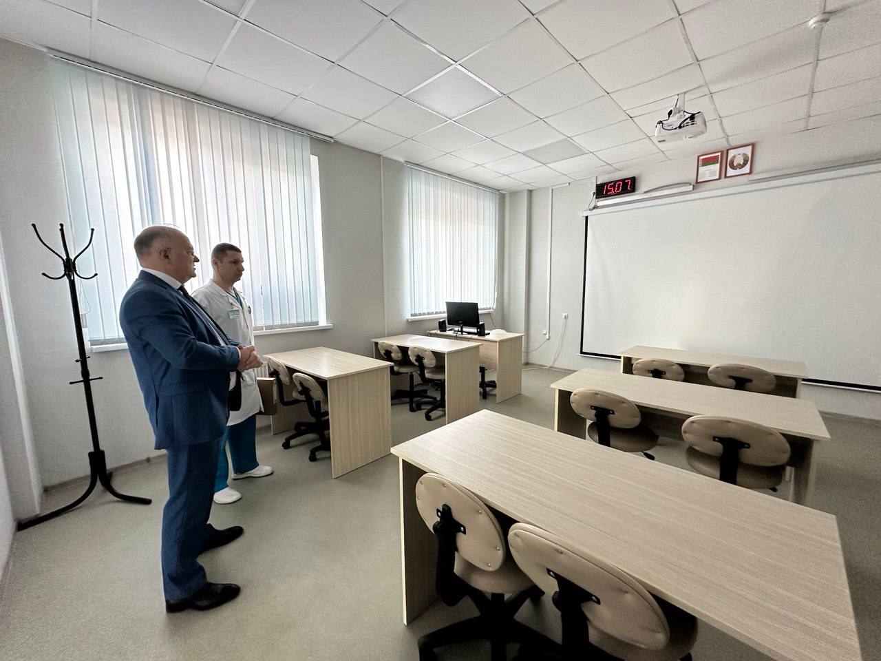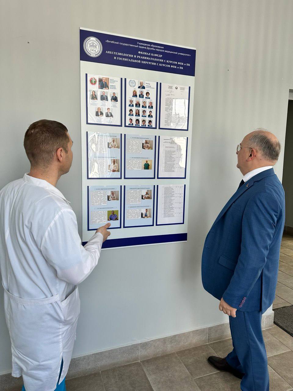 В рамках планового выезда ректором ВГМУ Алексеем Чукановым были посещены филиал кафедры анестезиологии и реаниматологии и госпитальной хирургии с курсами ФПК и ПК на базе УЗ "Могилёвская областная больница" и филиал кафедры инфекционных болезней с курсом ФПК и ПК на базе УЗ «Могилевская больница №1» с целью осуществления контроля за ведением документации, налаживания взаимодействия с администрацией учреждений, а также оценки актуальности учебных планов и программ в соответствии с современными научными достижениями.