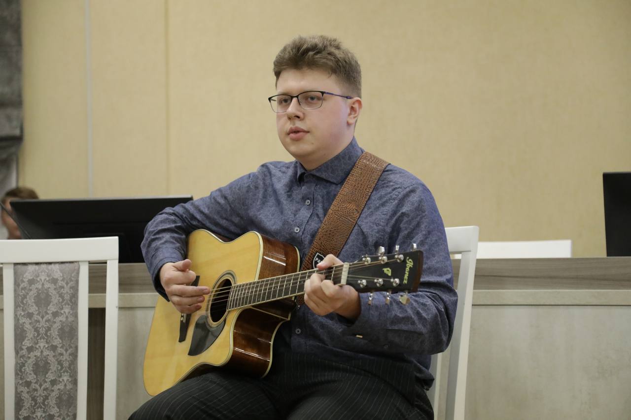 Помимо гитарных композиций, в программе прозвучала и домбра. Её звучание создало особую атмосферу вечера, органично дополнив гитарную музыку.