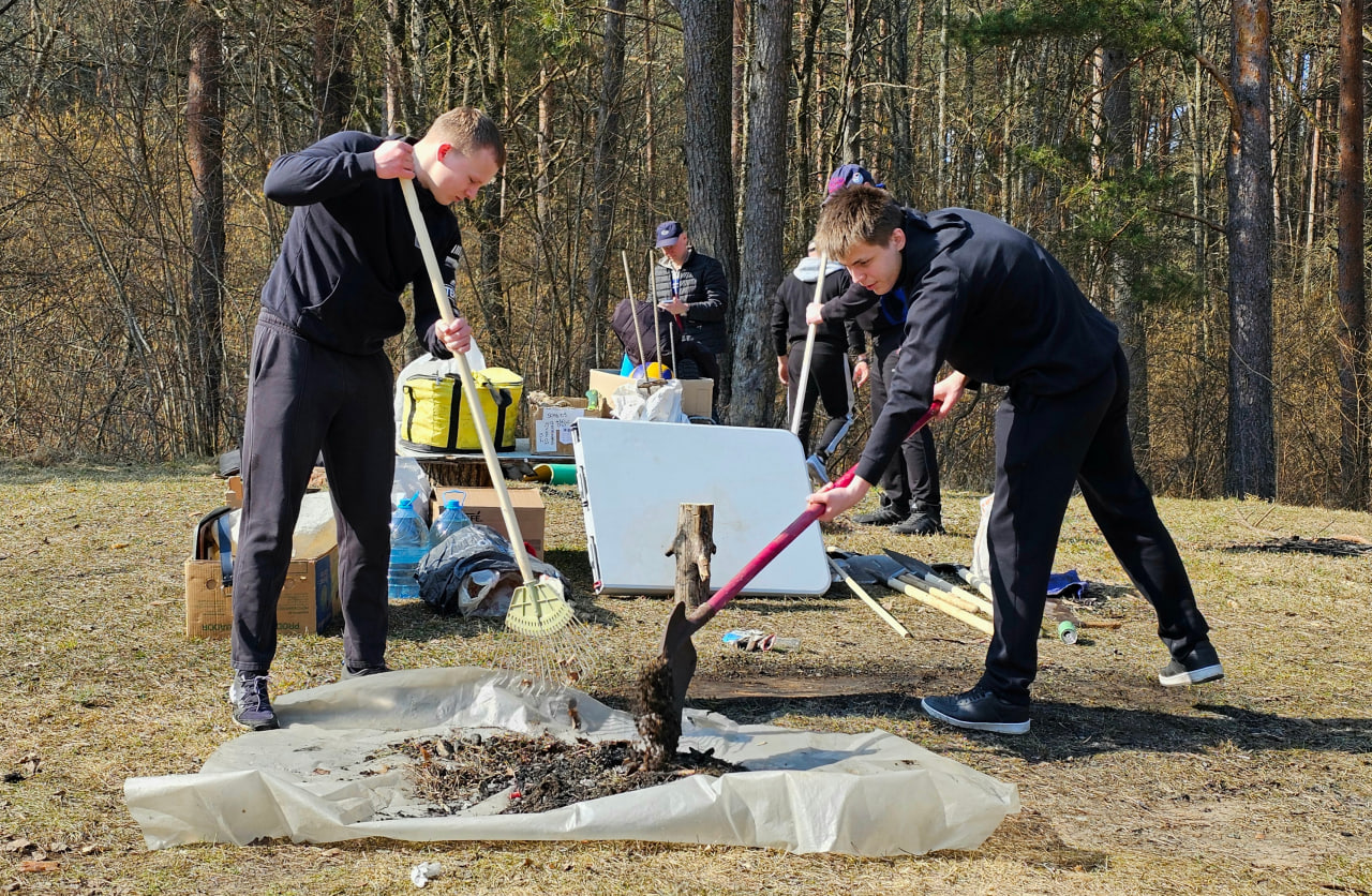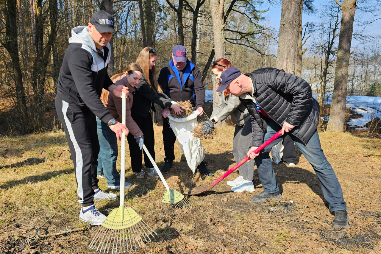 На автотранспорте университета группа из 20 человек прибыла на лесную поляну вблизи живописного озера Шевино. Первым делом, студенты и сотрудники навели порядок на прилегающей к водоёму и лесному массиву территории, излюбленному месту отдыха жителей нашего края. Таким образом мы поддержали общественную акцию «Лес! Дабро! Парадак!», проводимую по инициативе Министерства лесного хозяйства Республики Беларусь.