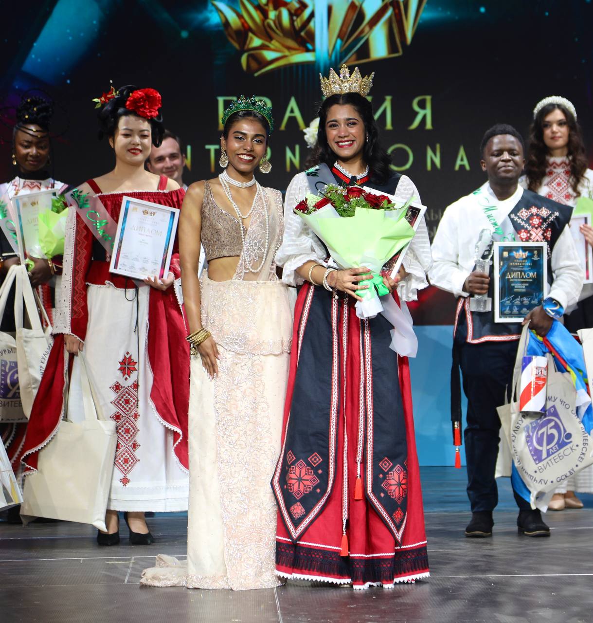 В финале зрители и строгое жюри увидели настоящий калейдоскоп талантов. Конкурсанты блеснули ораторским искусством, продемонстрировали свои творческие номера и, конечно, поразили зал роскошью дефиле — сначала в национальных костюмах, отражающих самобытность родных стран, а затем в изящных вечерних образах.