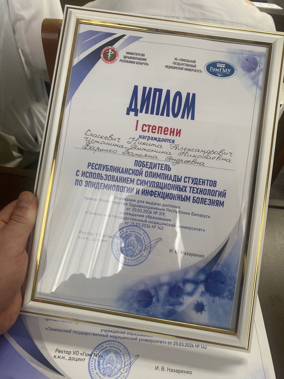 31-го марта 2026 года на базе ГомГМУ состоялся заключительный этап Республиканской олимпиады студентов с использованием симуляционных технологий по эпидемиологии и инфекционным болезням. Участие приняли студенты 4–6 курсов из всех медицинских университетов Беларуси. Тематика олимпиады — «Инфекционная безопасность: от профилактики к лечению».