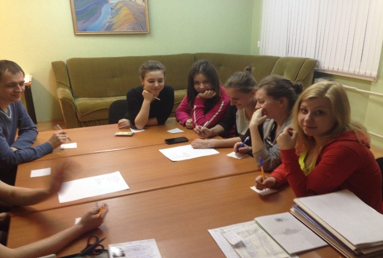 В начале занятия студенты были разделены на две группы: «юноши» и «девушки». Затем у участников была возможность исследовать стереотипные представления представителей противоположного пола и задать друг другу интересующие вопросы. Встреча прошла в доброжелательной обстановке, студенты получили заряд положительных эмоций.
