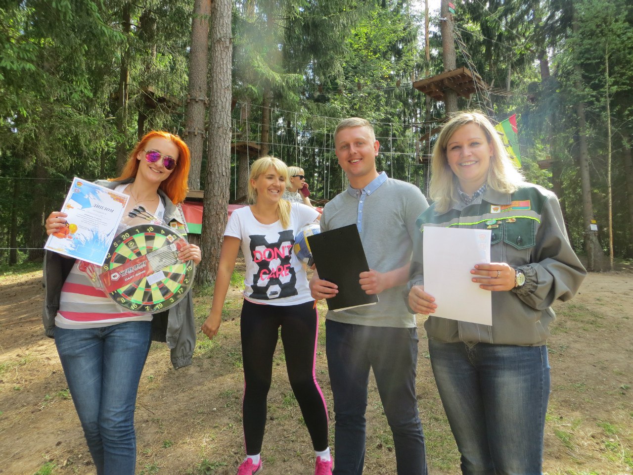 В соревнованиях было все, возгласы восторга на высоте 7 метров, селфи при полете над прудом и последний забитый мяч команде соперников в волейболе. Дипломы и командные призы дополнили хорошее настроение на площадке. Можно с уверенностью сказать, что ребята едут трудится действительно командой, где каждый чувствует надежное плечо друга.
