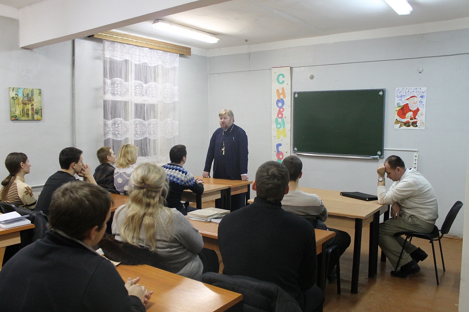 15 декабря на базе общежития №3 в рамках клубного объединения «Моя семья» состоялась встреча студентов «Семейные отношения и ценности» с Председателем молодежного отдела Витебской епархии протоиереем Александром Ковалевым.