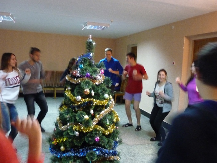 В кафе общежития № 5 УО ВГМУ 22 декабря 2015 года прошло развлекательное мероприятие «Новогодняя дискотека». Праздничную программу подготовили члены студенческого совета общежития. Дед Мороз и Снегурочка вместе со студентами водили вокруг елки хоровод, пели новогодние песни, разгадывали загадки, проводили забавные конкурсы.