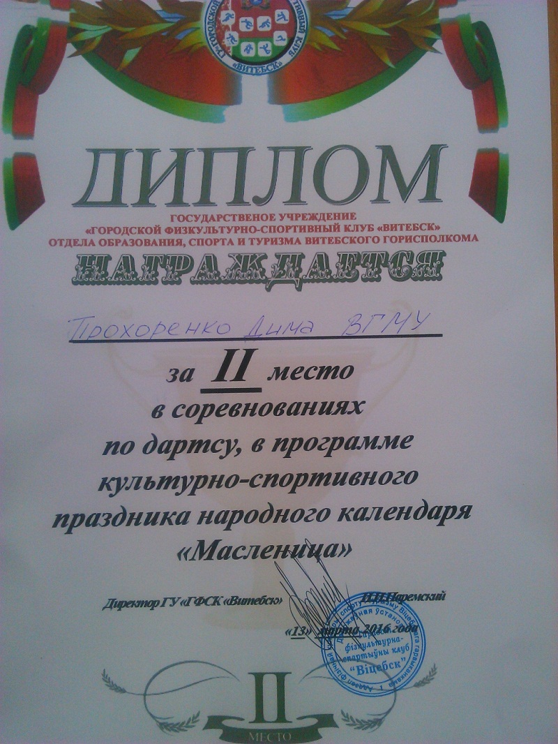 2 место в соревнованиях по дартсу занял инструктор спортивного клуба Прохоренко Д.А.