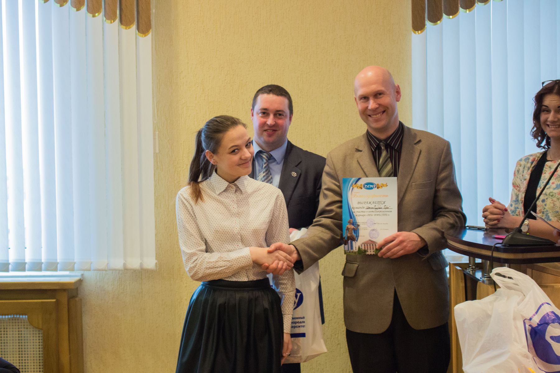 13 апреля 2016 г. прошел турнир среди сборных команд студентов и преподавателей УО ВГМУ. В своем роде новаторское мероприятие организовано профсоюзом сотрудников и студентов совместно с отделом по воспитательной и идеологической работе с молодежью УО ВГМУ, которое прошло под лозунгом Мы вместе. Участникам турнира представилась возможность абстрагироваться на 3 часа от рутины и повседневных забот и провести это время в интересной компании знатоков.