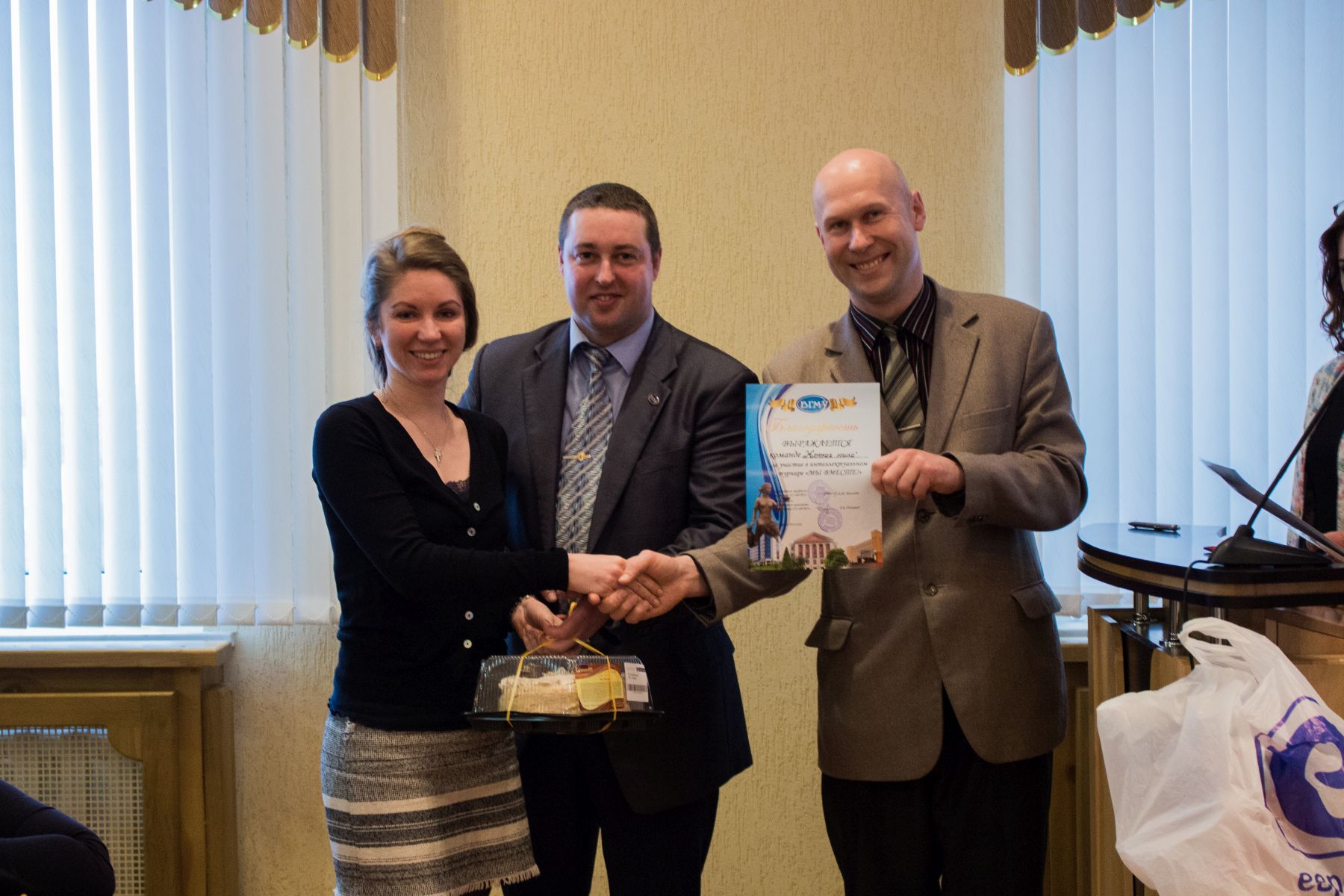 Команды были награждены кубками, сладкими призами и подарками от профкомов сотрудников и студентов ВГМУ.