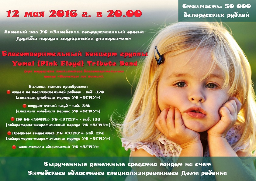 Уважаемые сотрудники и студенты! Приглашаем вас на благотворительный концерт, который состоится в актовом зале 12 мая в 20.00