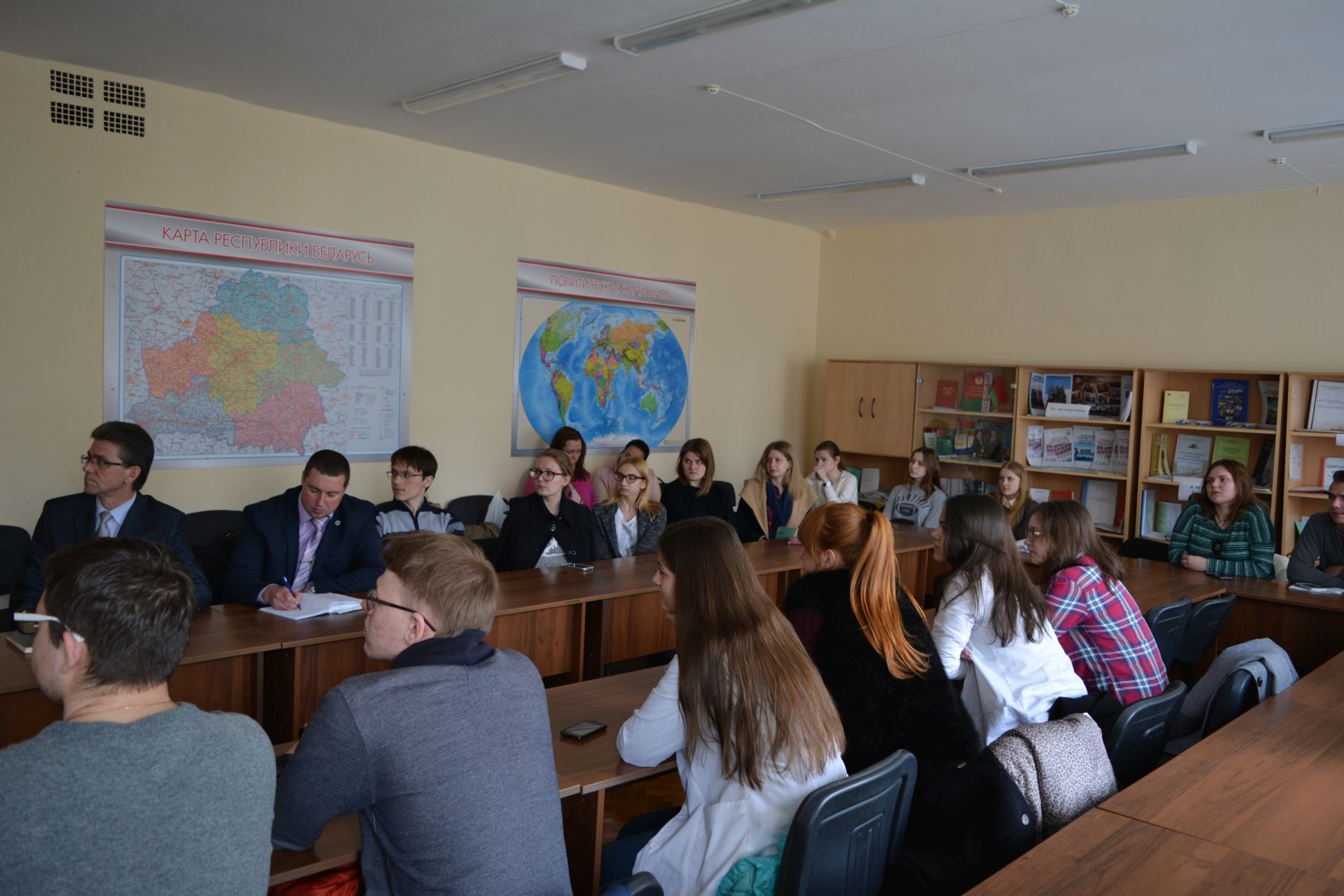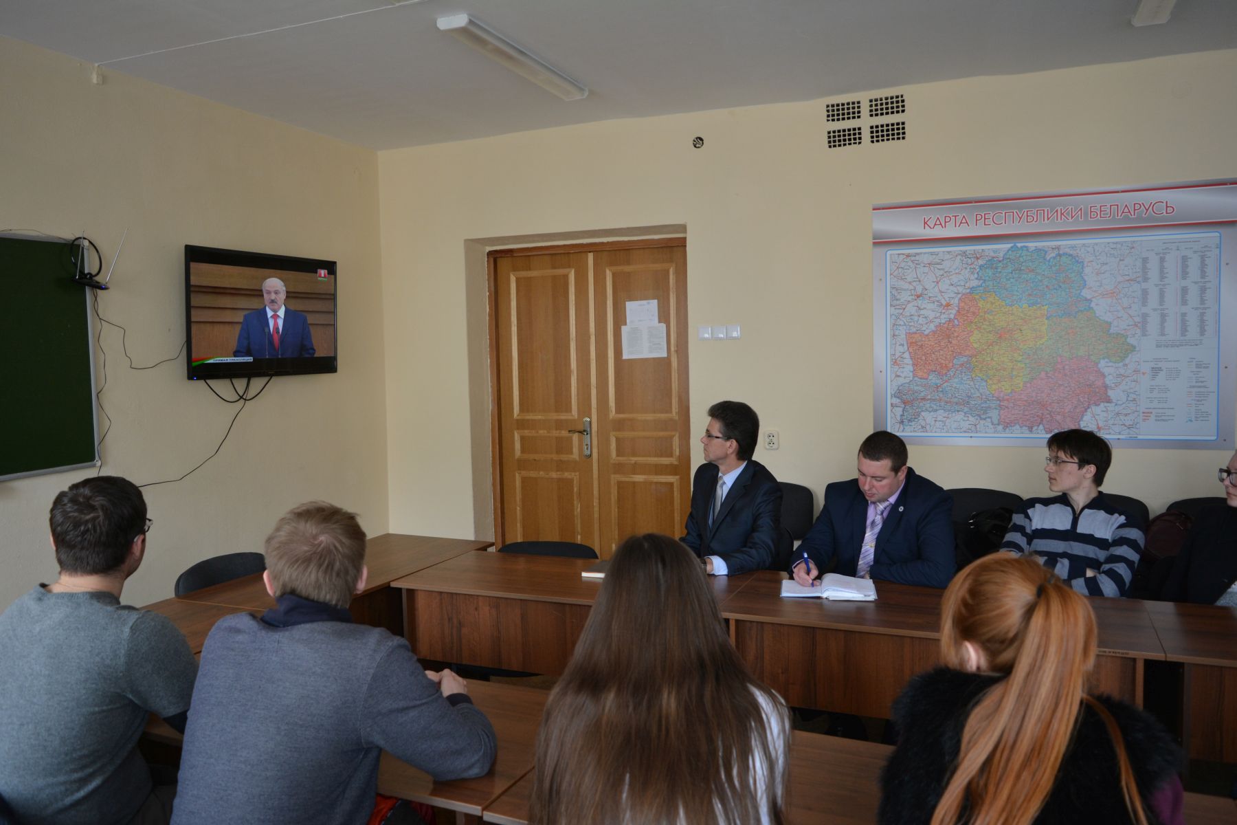 После телепросмотра в идеологическом центре университета выступления Президента Республики Беларусь А.Г. Лукашенко по инициативе проректора по учебно-воспитательной и идеологической работе УО «ВГМУ» Сыродоевой О.А. состоялось обсуждение со студенческой молодежью вуза основных проблем, на которых остановился в своем выступлении глава государства. Под руководством заведующего кафедрой социально-гуманитарных наук С.П. Кулика и председателя профкома студентов А.М. Мясоедова преподаватели и студенты в формате круглого стола рассмотрели важные положения послания Главы государства, которые касаются будущего нашей страны и непосредственно студенческой молодежи, молодых специалистов, врачей, медицинских работников, профессорско-преподавательского состава: развитие образования и здравоохранения, формирование здорового образа жизни, вопросы материнства и детства, уровень зарплат у молодых специалистов, обновление кадрового состава, внедрение в вузах передового опыта преподавания на базе лучших отечественных традиций, помощь общественных организаций в деле воспитания молодежи и поддержке культурно-досуговой сферы и др.
