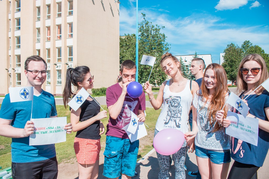 Студенты Витебского государственного ордена Дружбы народов медицинского университета собрались 31 мая на стадионе ВГМУ, чтобы поддержать политику Всемирной организации здравоохранения и белорусского государства, направленную на борьбу с табакокурением и пропагандой здорового образа жизни.