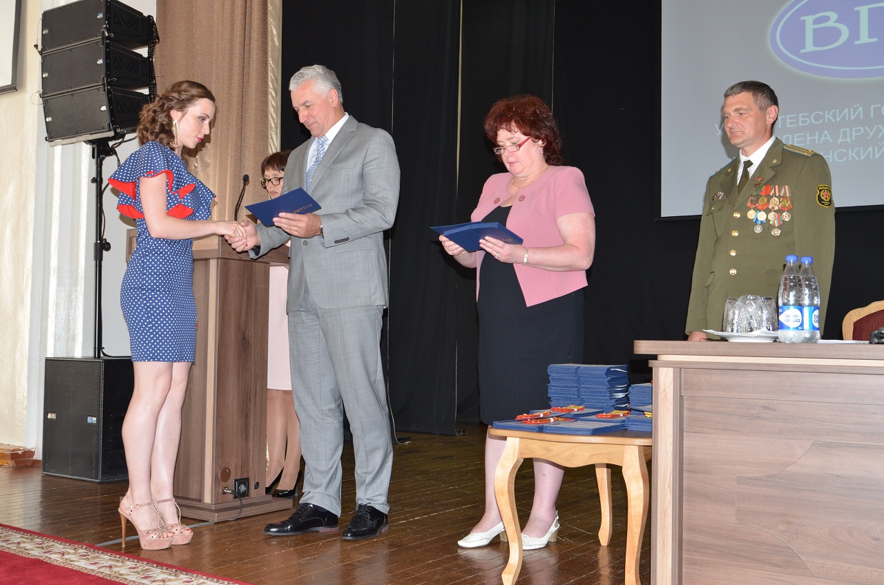 После того, как итоги государственных выпускных квалификационных экзаменов подвёл председатель Государственной экзаменационной комиссии Сергей Григорьевич Подолинский (зам.главного врача Витебской городской больницы скорой медицинской помощи), выпускники приняли «Клятву Гиппократа» и «Клятву врача Республики Беларусь».