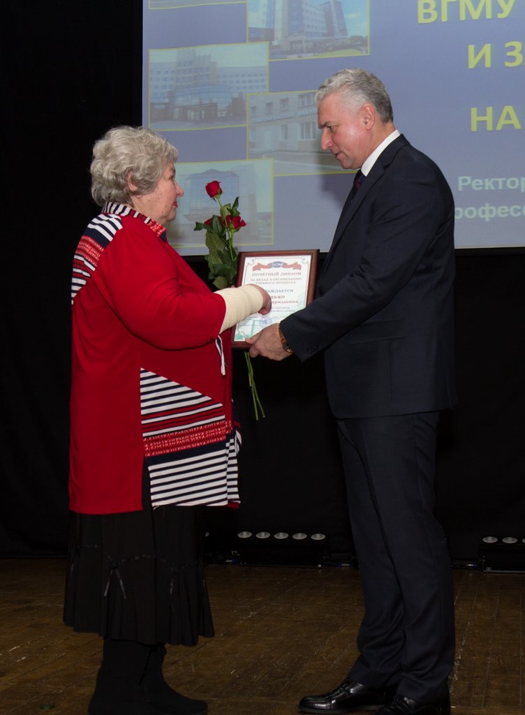 Адаскевича Владимира Петровича, заведующего кафедрой дерматовенерологии, д.м.н., профессора (за активную работу в профессорско-консультативном центре Клиники ВГМУ, проведение консультативной работы в учреждениях здравоохранения Республики Беларусь, разработку и внедрение новых методов диагностики и лечения в практику здравоохранения).
