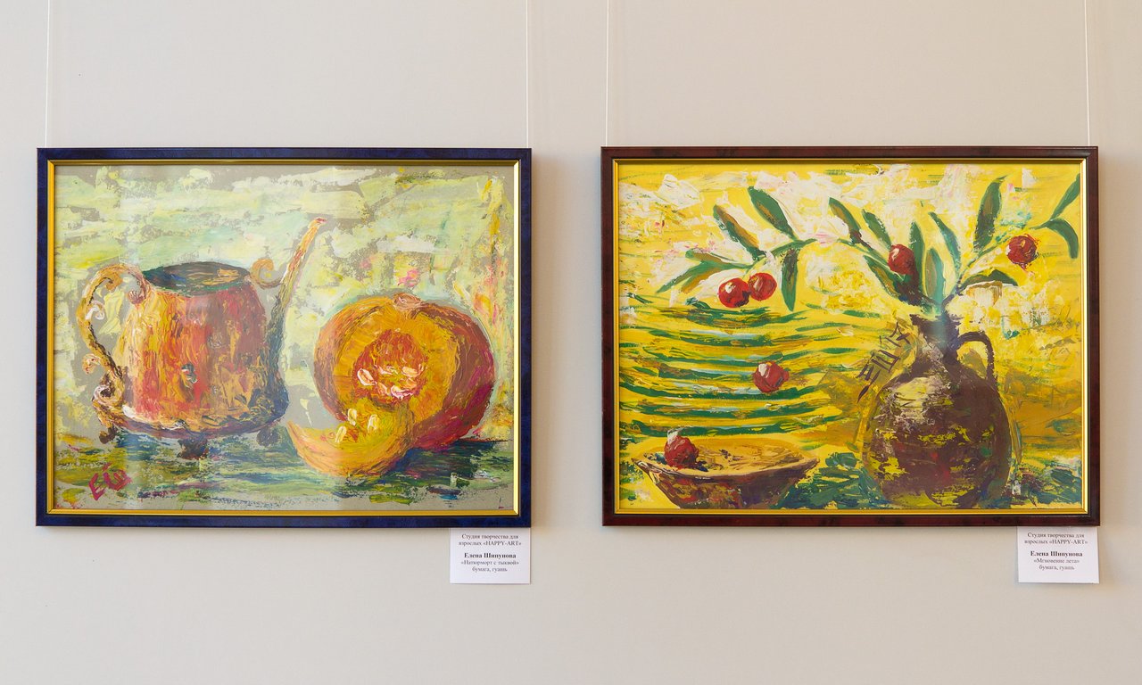 Занимаясь в студии по 2 часа в неделю в уютной, теплой атмосфере, студийцы не только творили, но и много общались за чашкой чая. Это состояние умиротворения и гармонии ощущается в представленных на выставке работах.