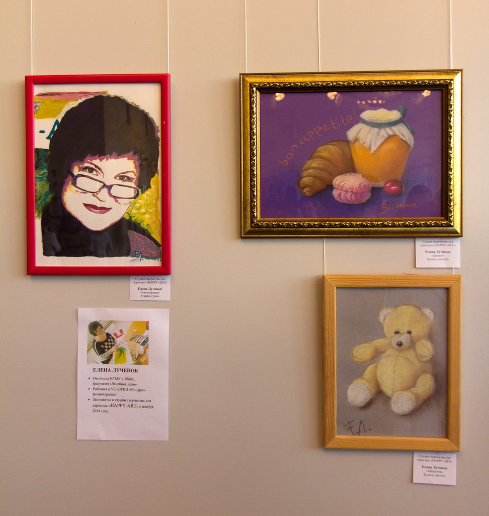 Название выставки не случайно. Желание научиться рисовать привело в студию первых учеников ещё в 2014 году: Елену Лученок — врача-физиотерапевта и Кирилла Уфимцева — студента 5-го курса ВГМУ. Они и «заразили» вирусом творчества своих друзей и знакомых в медицинской среде: Наталью Галкину, Владимира и Марию Балясовых, Татьяну Воронину, Елену Шипунову, Татьяну Бохан, Елену Павлову, Анатолия Фомина.
