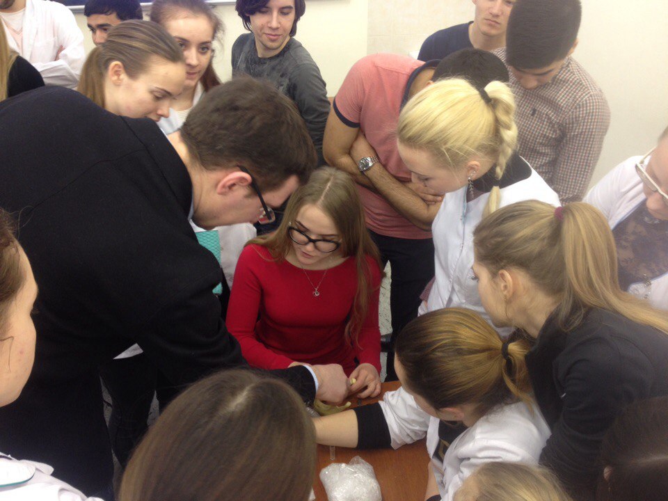 Студенты прослушали лекцию по основам дентальной имплантации, имели возможность задать интересующие вопросы, также в ходе лекции были продемонстрированы фото конкретных клинических случаев до и после операции детальной имплантации, студентам были представлены видеоматериалы хода операции.
