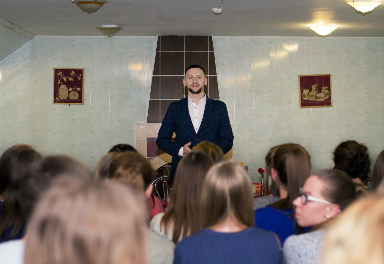 Началось мероприятие со вступительного слова заместителя председателя профкома студентов Ильи Сармы, в котором он поздравил женскую часть присутствующих от лица профкома и от себя лично, пожелал девушкам красоты, доброты, успешной учебы, любви и успехов в будущей карьере.