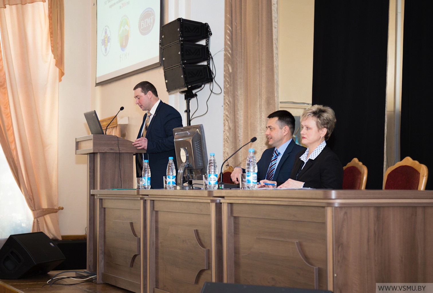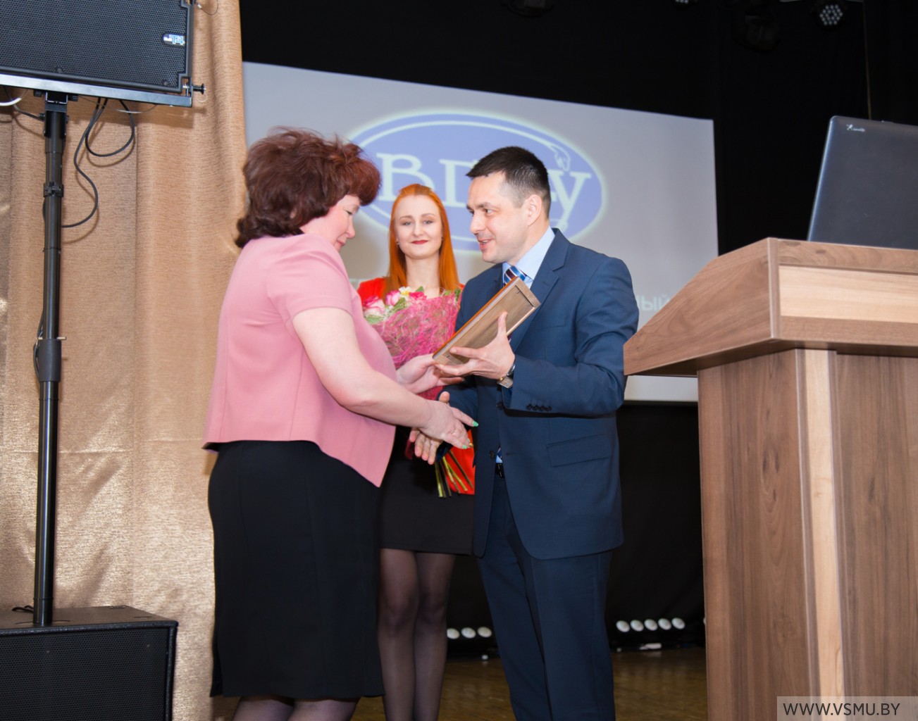 Председатель Витебского областного комитета Белорусского профсоюза работников здравоохранения В.А. Мужиченко высоко отметил работу первичной профсоюзной организации за прошедший год. Он отметил, что значительных успехов профсоюзная организация достигла в направлении информационной и учебно-методической работы, отметил важность работы в направлении создания инновационной школы профсоюзного резерва «Стратегический резерв–2020», вручил Почетные грамоты президиума Витебского областного комитета Белорусского профсоюза работников здравоохранения за содействие и активное участие в жизни первичной профсоюзной организации декану лечебного факультета профессору И.В. Городецкой и декану фармацевтического факультета доценту В.В. Кугач.