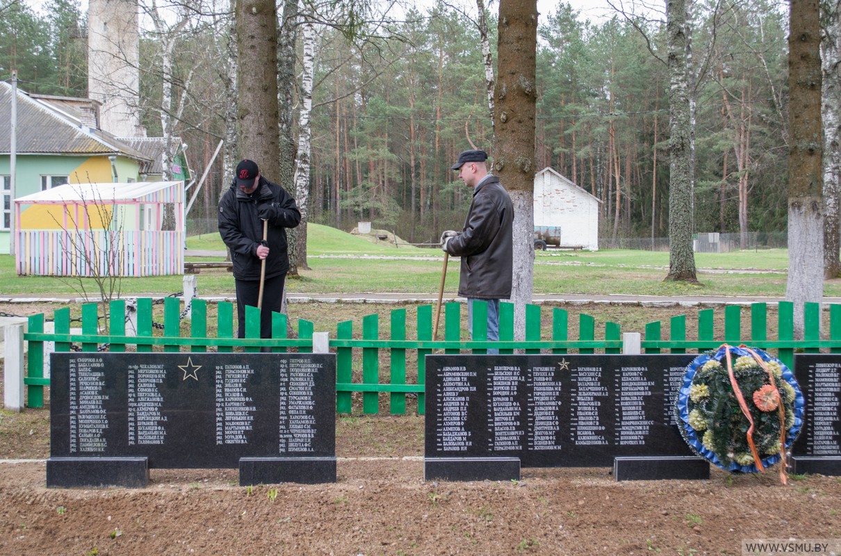 2 мая 2017 года профком студентов и сотрудников ВГМУ при поддержке администрации вуза организовали поездку студентов и преподавателей к данному мемориалу с целью благоустройства территории мемориала (где располагается, кстати, захоронение Героя Советского Союза Н. Кольцова) и помощи в уборке футбольного, волейбольного поля и прилегающих зон детского оздоровительного центра «Радуга», в котором в летнее время отдыхают и оздоравливаются дети сотрудников системы здравоохранения Витебской области.